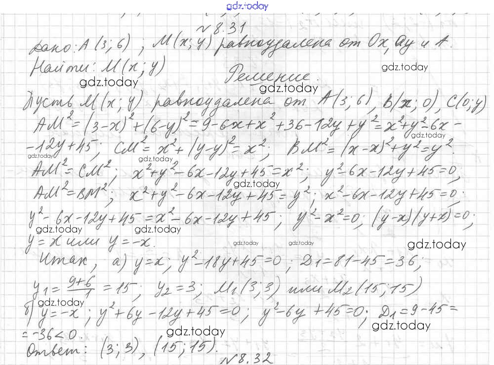 Ответы к §8 Решение к главе 3. Декартовы координаты на плоскости 8.31 Учебнику по Геометрии для 9 класса Мерзляк, Поляков Углубленный уровень Вентана-граф 2019