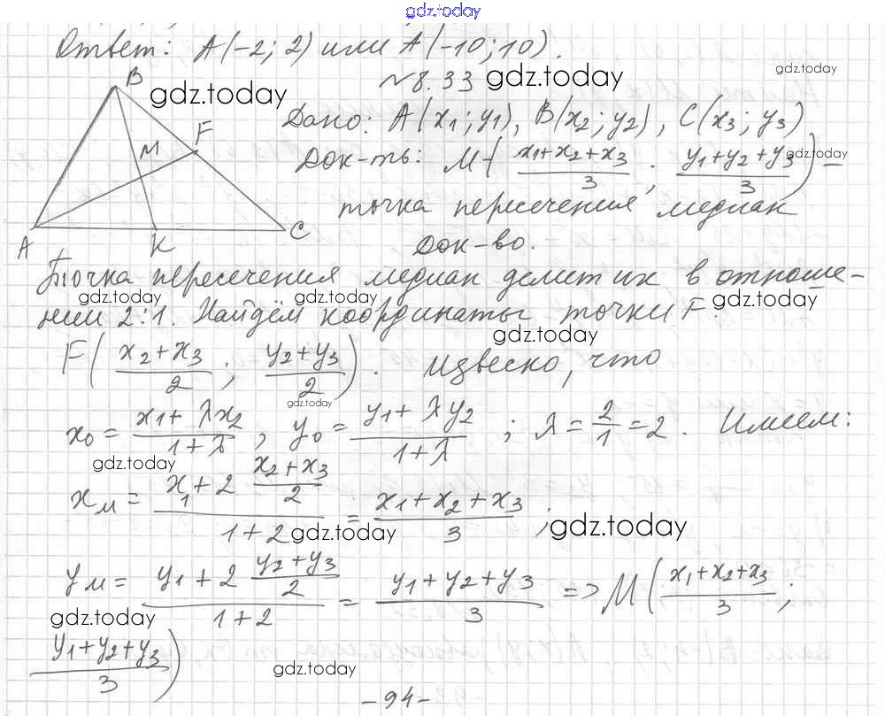 Ответы к §8 Решение к главе 3. Декартовы координаты на плоскости 8.33 Учебнику по Геометрии для 9 класса Мерзляк, Поляков Углубленный уровень Вентана-граф 2019