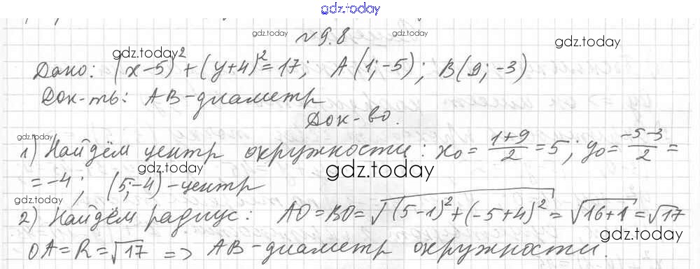 Ответы к §9 Решение к главе 3. Декартовы координаты на плоскости 9.8 Учебнику по Геометрии для 9 класса Мерзляк, Поляков Углубленный уровень Вентана-граф 2019