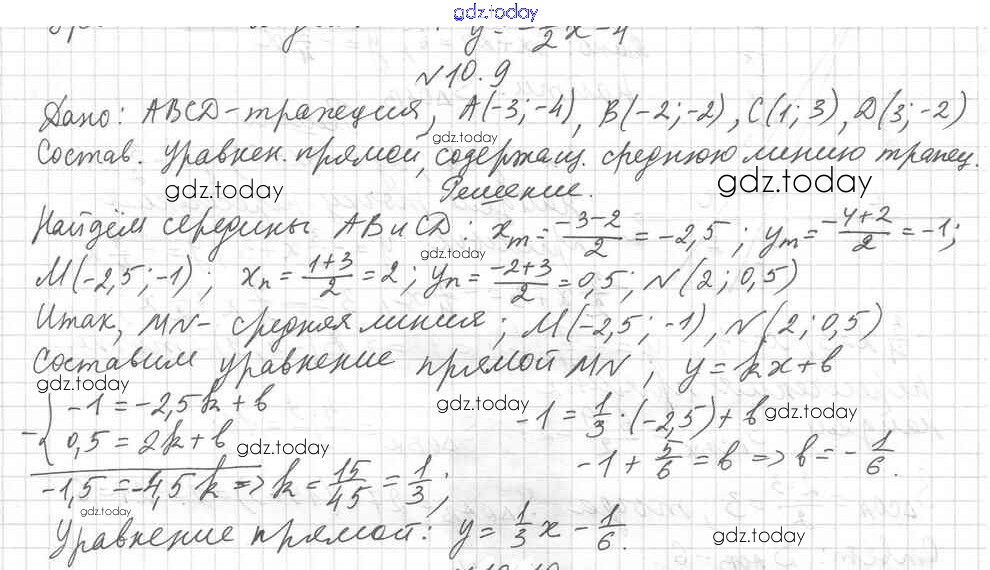 Ответы к §10 Решение к главе 3. Декартовы координаты на плоскости 10.9 Учебнику по Геометрии для 9 класса Мерзляк, Поляков Углубленный уровень Вентана-граф 2019