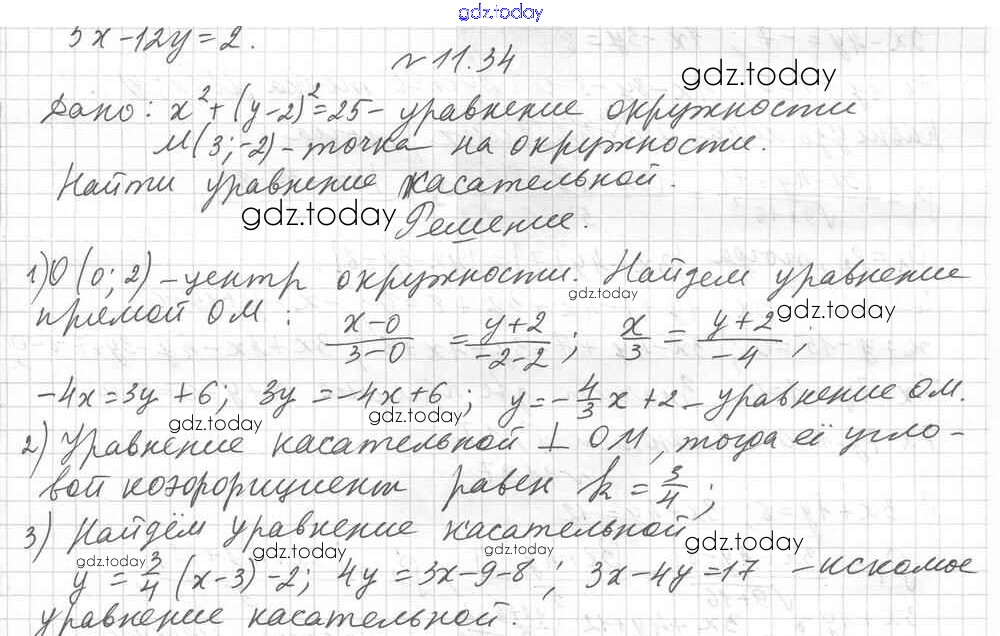 Ответы к §11 Решение к главе 3. Декартовы координаты на плоскости 11.34 Учебнику по Геометрии для 9 класса Мерзляк, Поляков Углубленный уровень Вентана-граф 2019