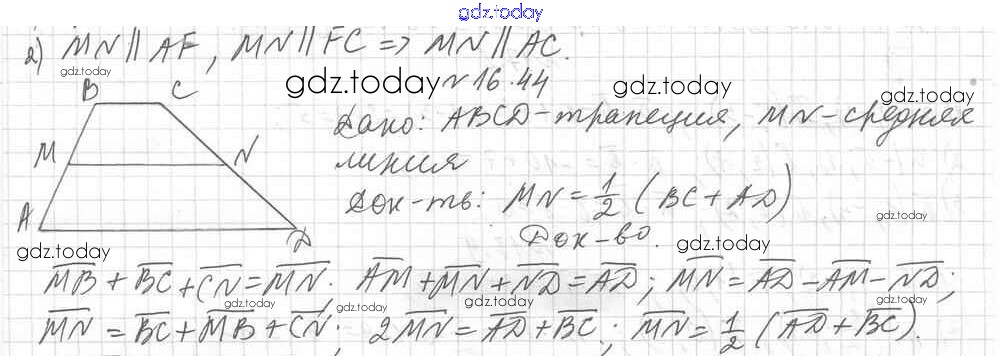 На страницах сайта gdz.today вы найдете учебный и вспомогательный материал, направленный на улучшения знаний школьной программы. ГДЗ - онлайн мир знаний §16 Решение к главе 4. Векторы 16.44 Учебнику по Геометрии для 9 класса Мерзляк, Поляков Углубленный уровень Вентана-граф 2019