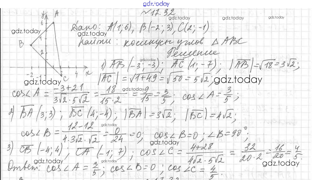 На страницах сайта gdz.today вы найдете учебный и вспомогательный материал, направленный на улучшения знаний школьной программы. ГДЗ - онлайн мир знаний §17 Решение к главе 4. Векторы 17.32 Учебнику по Геометрии для 9 класса Мерзляк, Поляков Углубленный уровень Вентана-граф 2019