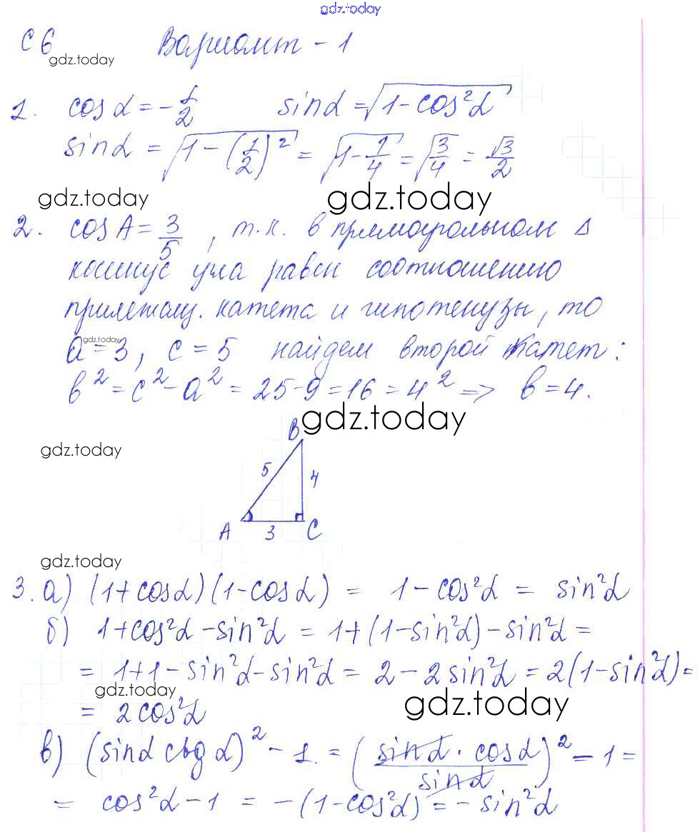 Ответы к СР-6. Варианты к учебнику Атанасяна 1 Контрольным и самостоятельным работам по Геометрии для 9 класса Журавлев, Малышева Экзамен УМК 2016