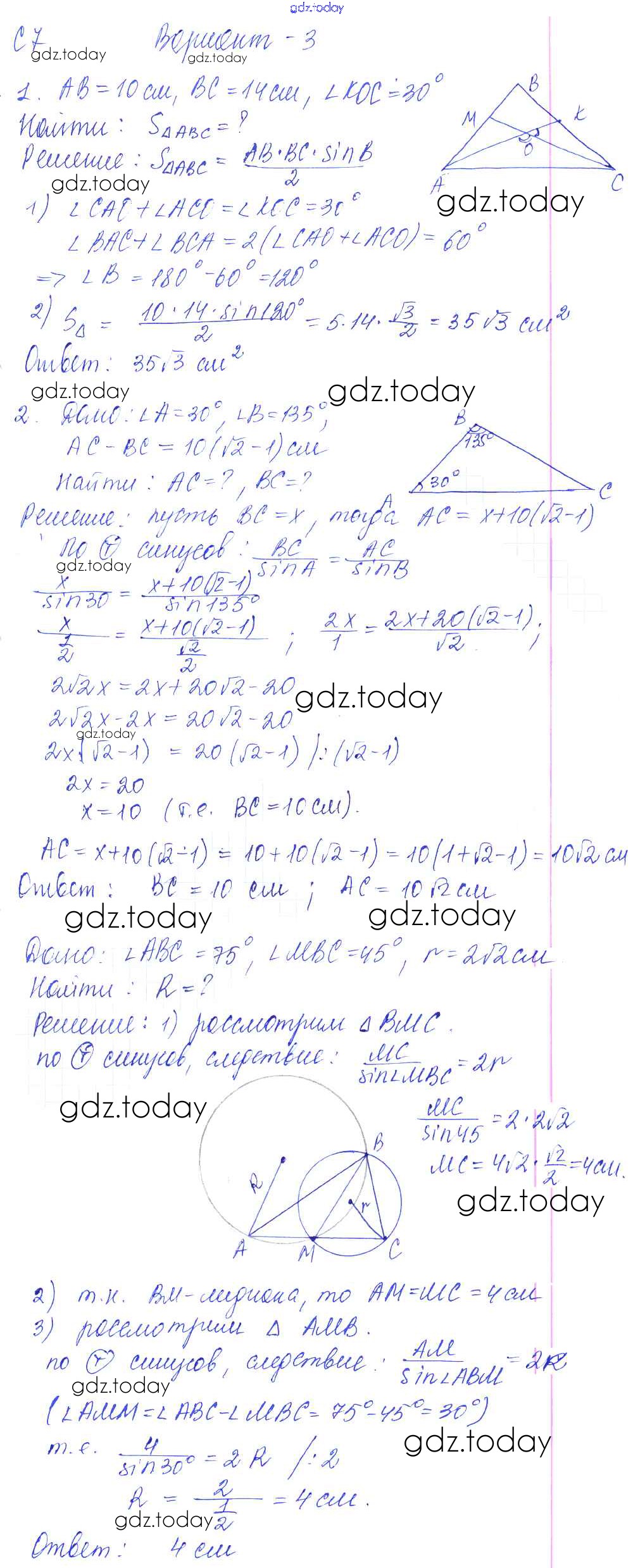 На страницах сайта gdz.today вы найдете учебный и вспомогательный материал, направленный на улучшения знаний школьной программы. ГДЗ - онлайн мир знаний СР-7. Варианты к учебнику Атанасяна 3 Контрольным и самостоятельным работам по Геометрии для 9 класса Журавлев, Малышева Экзамен УМК 2016