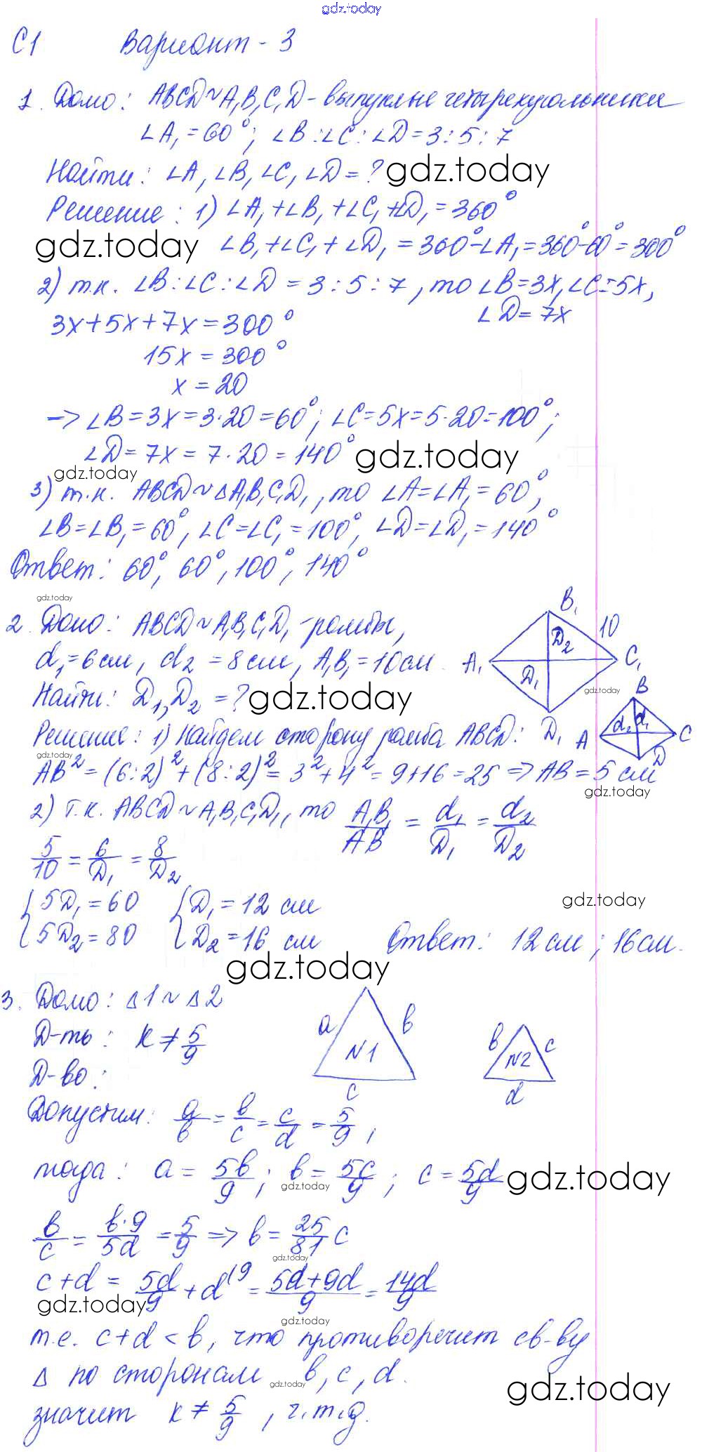 На страницах сайта gdz.today вы найдете учебный и вспомогательный материал, направленный на улучшения знаний школьной программы. ГДЗ - онлайн мир знаний СР-1. Варианты к учебнику Погорелова 3 Контрольным и самостоятельным работам по Геометрии для 9 класса Журавлев, Малышева Экзамен УМК 2016