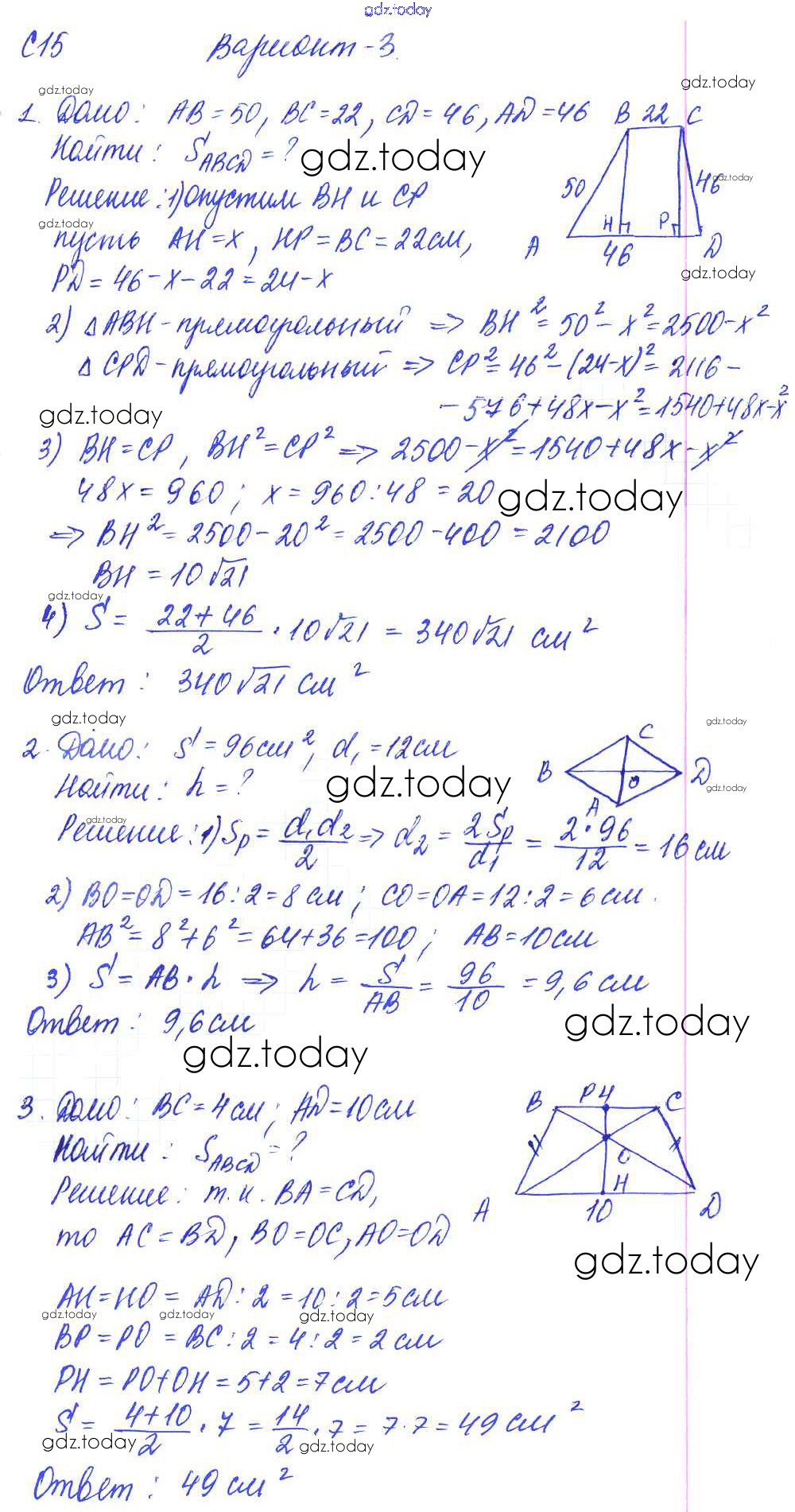 На страницах сайта gdz.today вы найдете учебный и вспомогательный материал, направленный на улучшения знаний школьной программы. ГДЗ - онлайн мир знаний СР-15. Варианты к учебнику Погорелова 3 Контрольным и самостоятельным работам по Геометрии для 9 класса Журавлев, Малышева Экзамен УМК 2016