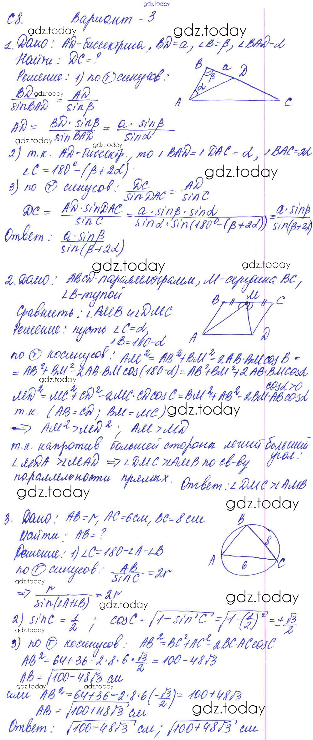 На страницах сайта gdz.today вы найдете учебный и вспомогательный материал, направленный на улучшения знаний школьной программы. ГДЗ - онлайн мир знаний СР-8. Варианты к учебнику Погорелова 3 Контрольным и самостоятельным работам по Геометрии для 9 класса Журавлев, Малышева Экзамен УМК 2016