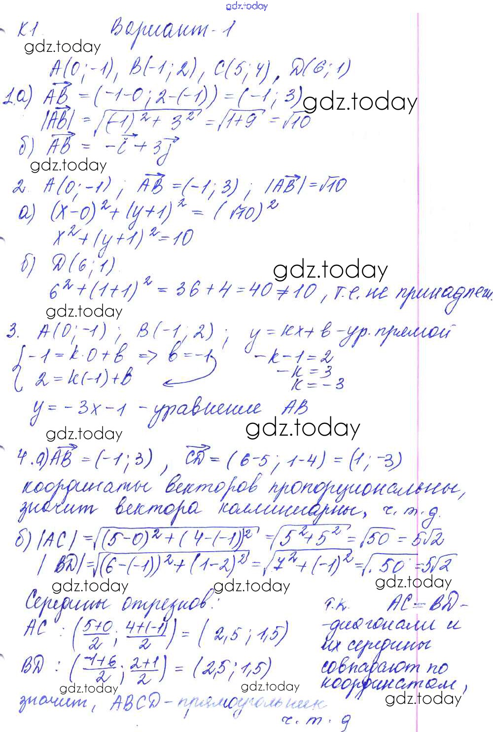 Ответы к КР-1. Варианты к учебнику Атанасяна 1 Контрольным и самостоятельным работам по Геометрии для 9 класса Журавлев, Малышева Экзамен УМК 2016