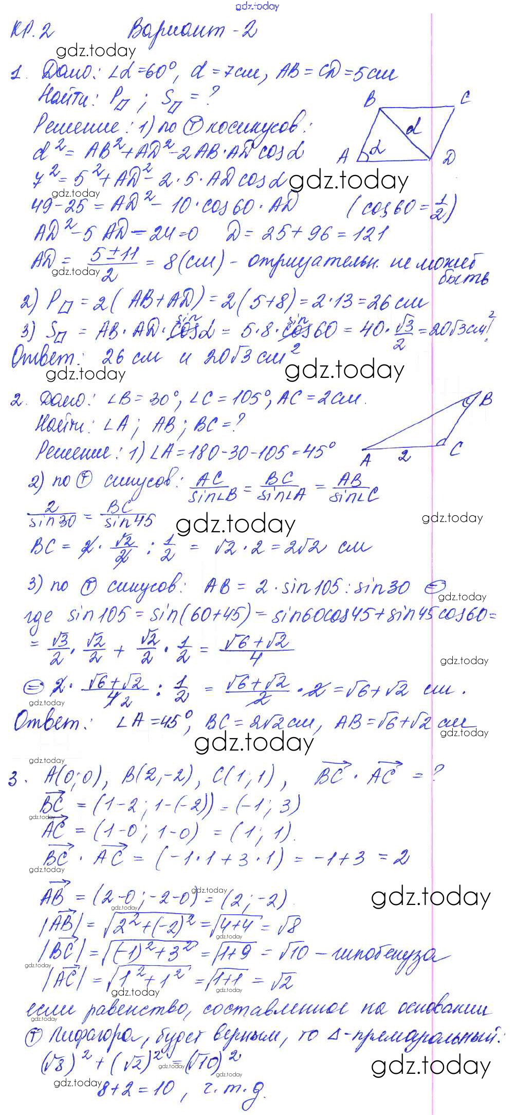 На страницах сайта gdz.today вы найдете учебный и вспомогательный материал, направленный на улучшения знаний школьной программы. ГДЗ - онлайн мир знаний КР-2. Варианты к учебнику Атанасяна 2 Контрольным и самостоятельным работам по Геометрии для 9 класса Журавлев, Малышева Экзамен УМК 2016