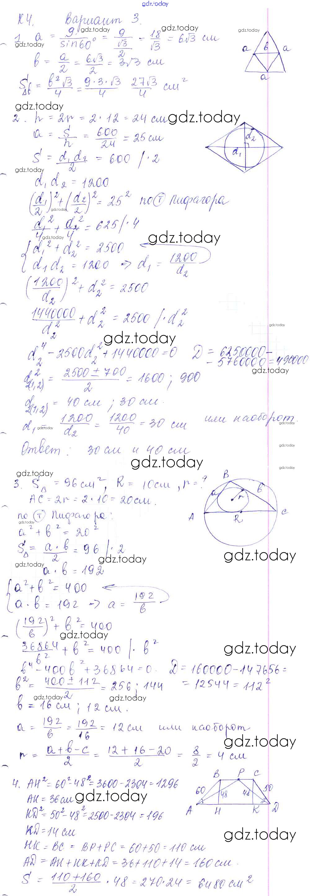 На страницах сайта gdz.today вы найдете учебный и вспомогательный материал, направленный на улучшения знаний школьной программы. ГДЗ - онлайн мир знаний КР-4. Варианты к учебнику Погорелова 3 Контрольным и самостоятельным работам по Геометрии для 9 класса Журавлев, Малышева Экзамен УМК 2016