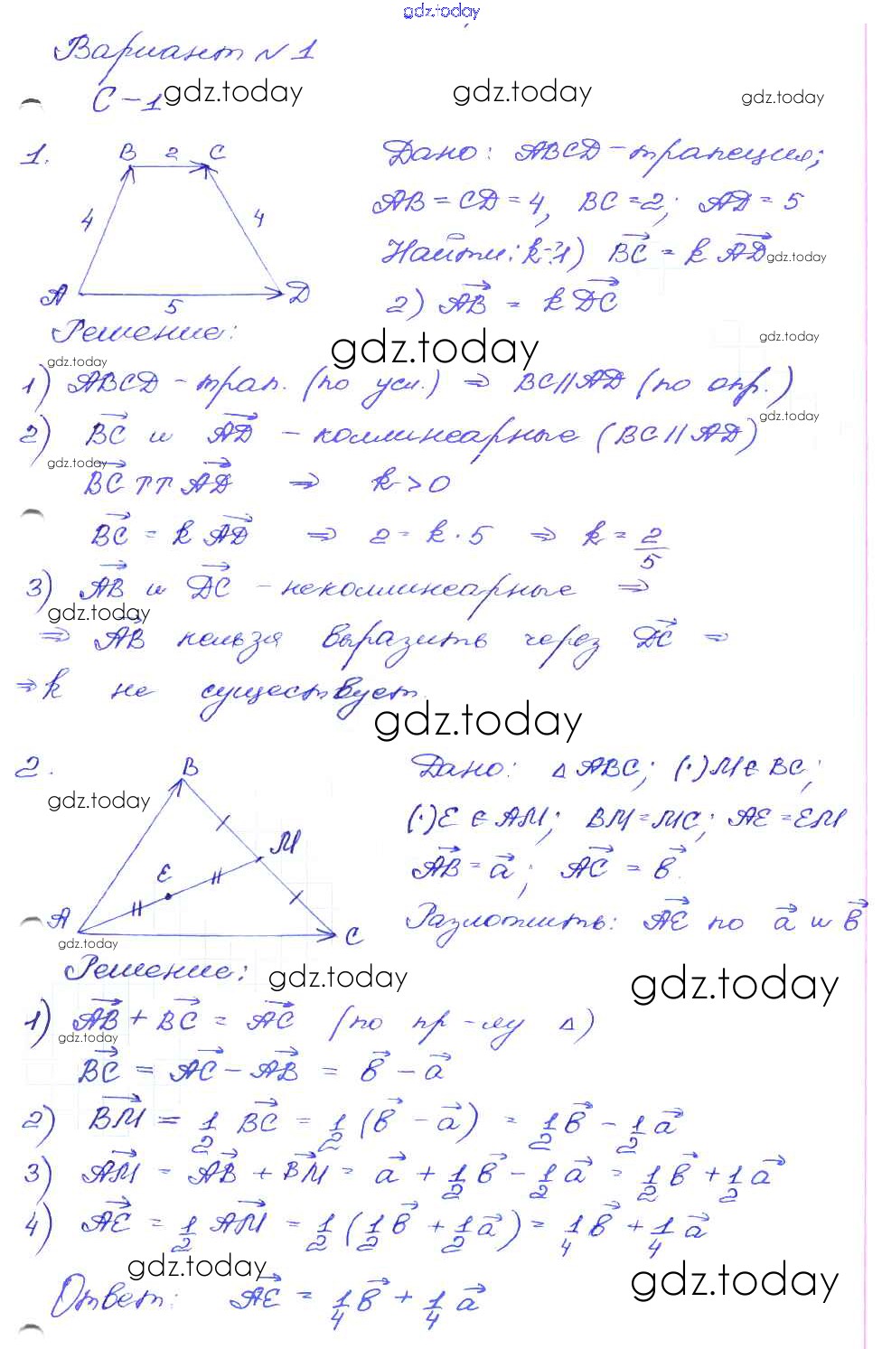 Ответы к СР-1. Варианты Решение к самостоятельным работам 1 Дидактическим материалам по Геометрии для 9 класса Зив Просвещение 2016