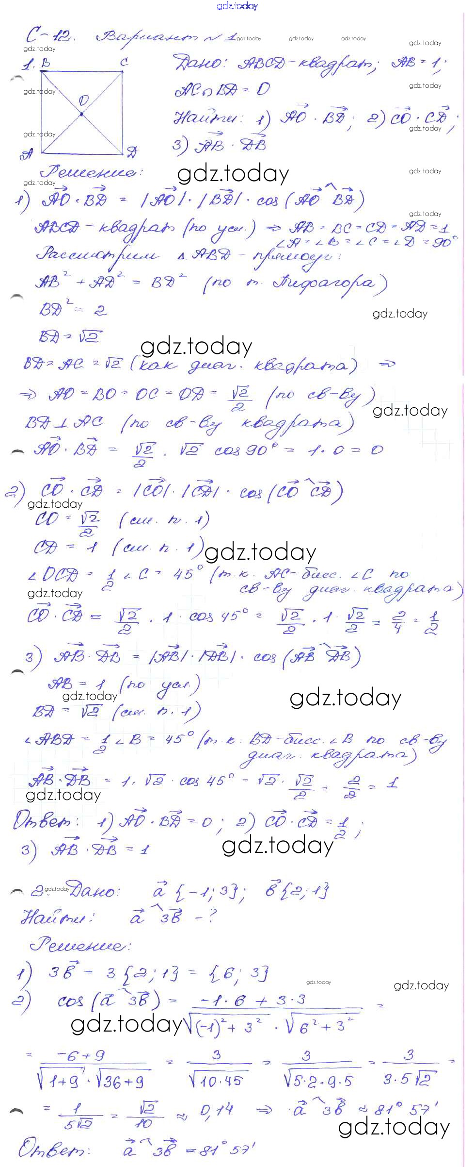 Ответы к СР-12. Варианты Решение к самостоятельным работам 1 Дидактическим материалам по Геометрии для 9 класса Зив Просвещение 2016