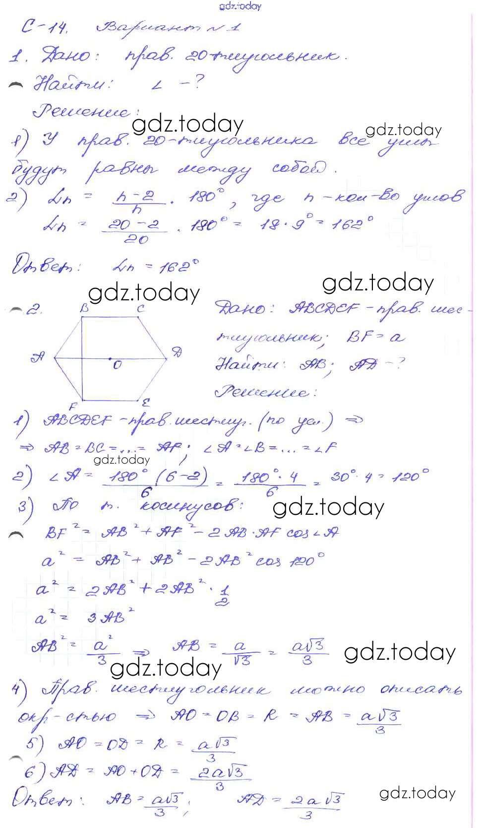 Ответы к СР-14. Варианты Решение к самостоятельным работам 1 Дидактическим материалам по Геометрии для 9 класса Зив Просвещение 2016