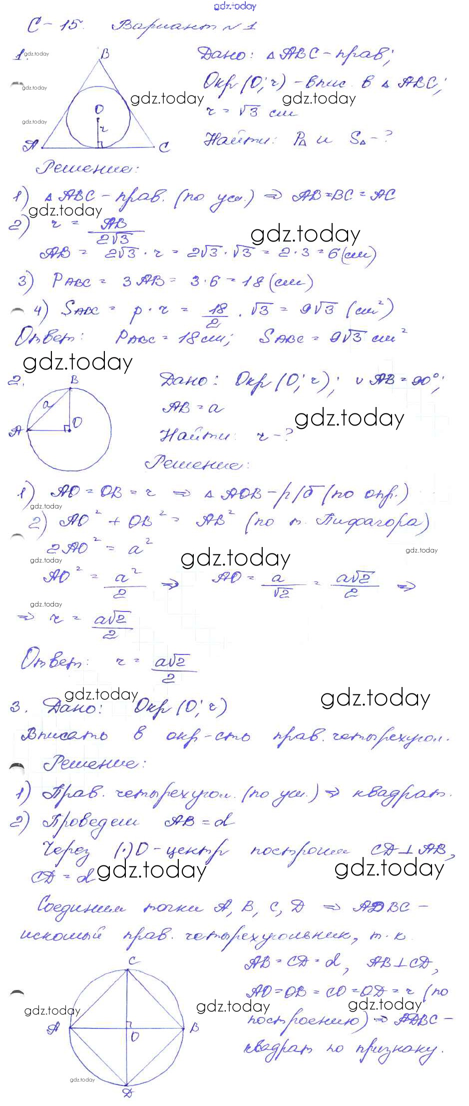 Ответы к СР-15. Варианты Решение к самостоятельным работам 1 Дидактическим материалам по Геометрии для 9 класса Зив Просвещение 2016
