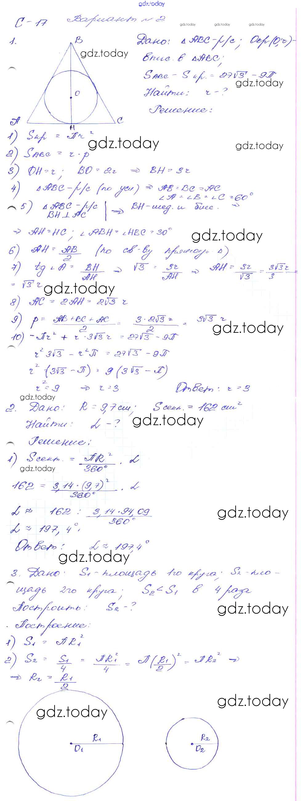 На страницах сайта gdz.today вы найдете учебный и вспомогательный материал, направленный на улучшения знаний школьной программы. ГДЗ - онлайн мир знаний СР-17. Варианты Решение к самостоятельным работам 2 Дидактическим материалам по Геометрии для 9 класса Зив Просвещение 2016