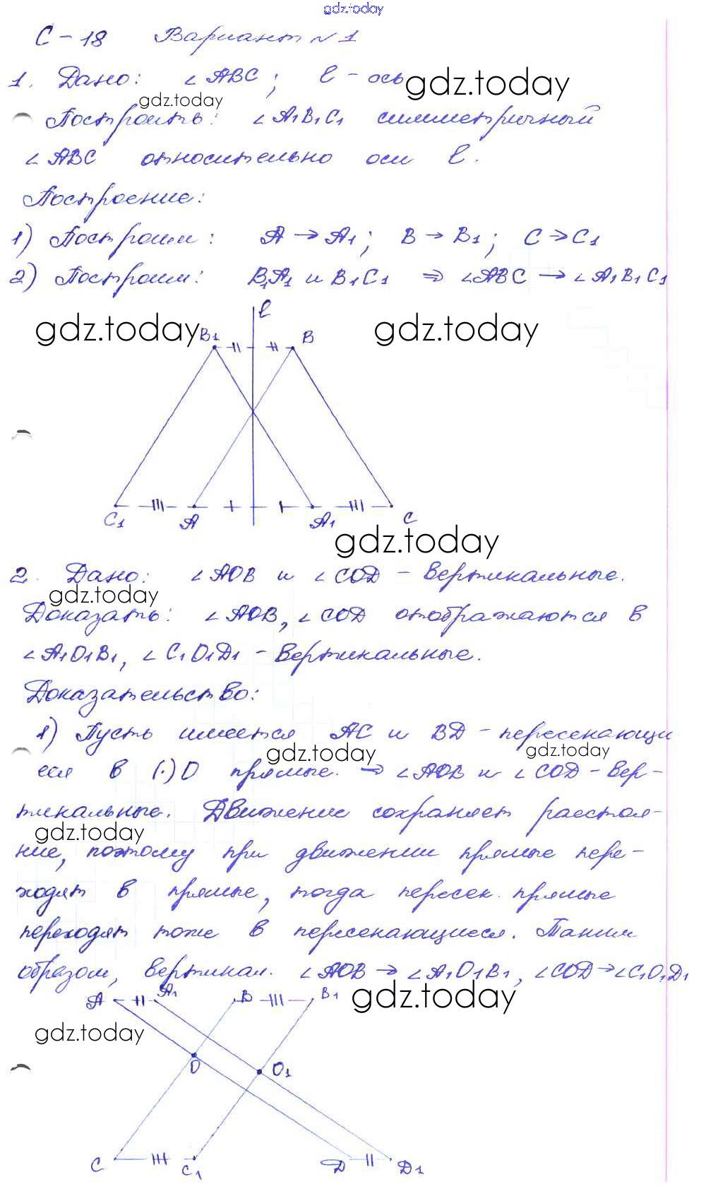 Ответы к СР-18. Варианты Решение к самостоятельным работам 1 Дидактическим материалам по Геометрии для 9 класса Зив Просвещение 2016