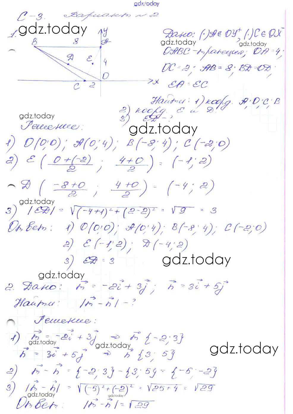 Ответы к СР-3. Варианты Решение к самостоятельным работам 2 Дидактическим материалам по Геометрии для 9 класса Зив Просвещение 2016