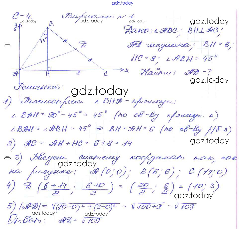 Ответы к СР-4. Варианты Решение к самостоятельным работам 1 Дидактическим материалам по Геометрии для 9 класса Зив Просвещение 2016