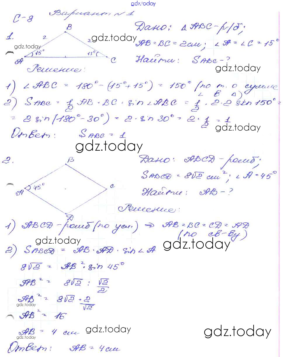Ответы к СР-8. Варианты Решение к самостоятельным работам 1 Дидактическим материалам по Геометрии для 9 класса Зив Просвещение 2016