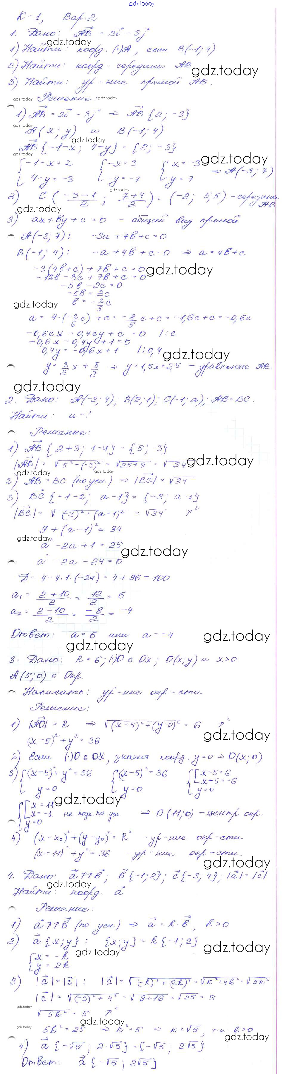 Ответы к КР-1. Варианты Решение к контрольным работам 2 Дидактическим материалам по Геометрии для 9 класса Зив Просвещение 2016