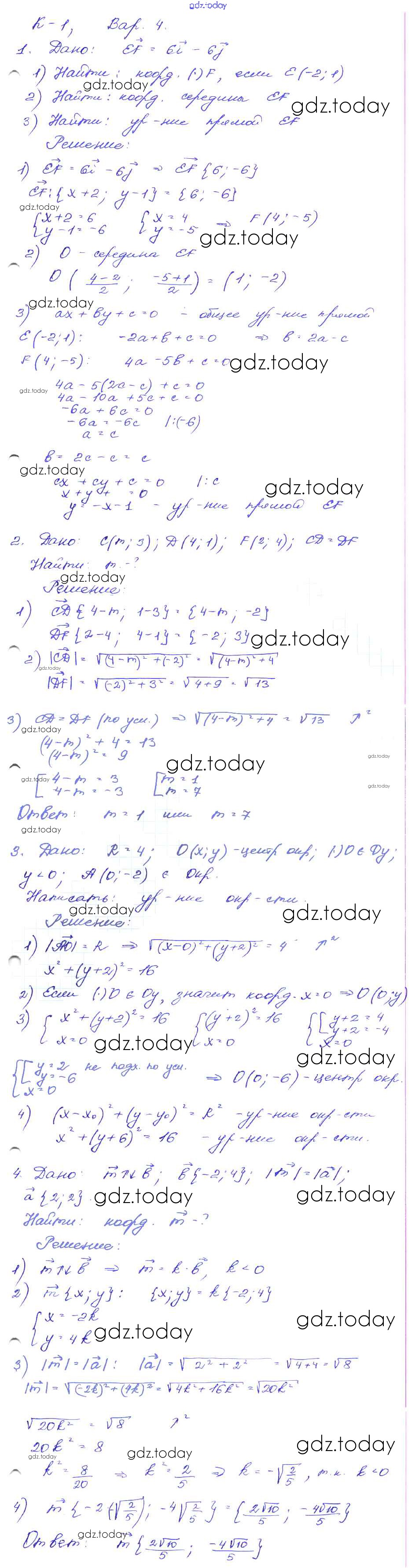 На страницах сайта gdz.today вы найдете учебный и вспомогательный материал, направленный на улучшения знаний школьной программы. ГДЗ - онлайн мир знаний КР-1. Варианты Решение к контрольным работам 4 Дидактическим материалам по Геометрии для 9 класса Зив Просвещение 2016