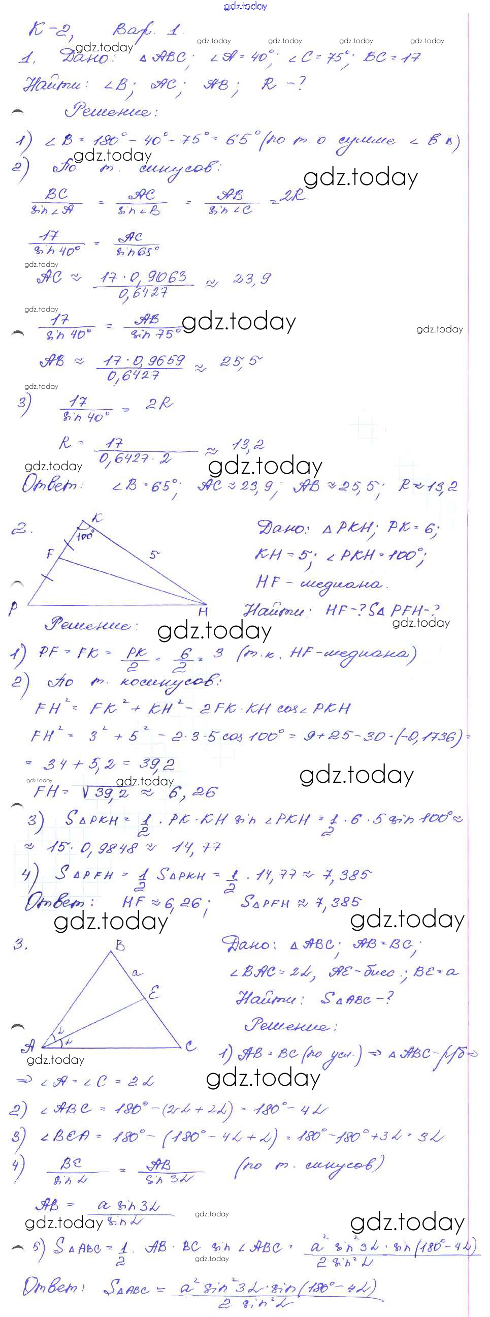 Ответы к КР-2. Варианты Решение к контрольным работам 1 Дидактическим материалам по Геометрии для 9 класса Зив Просвещение 2016