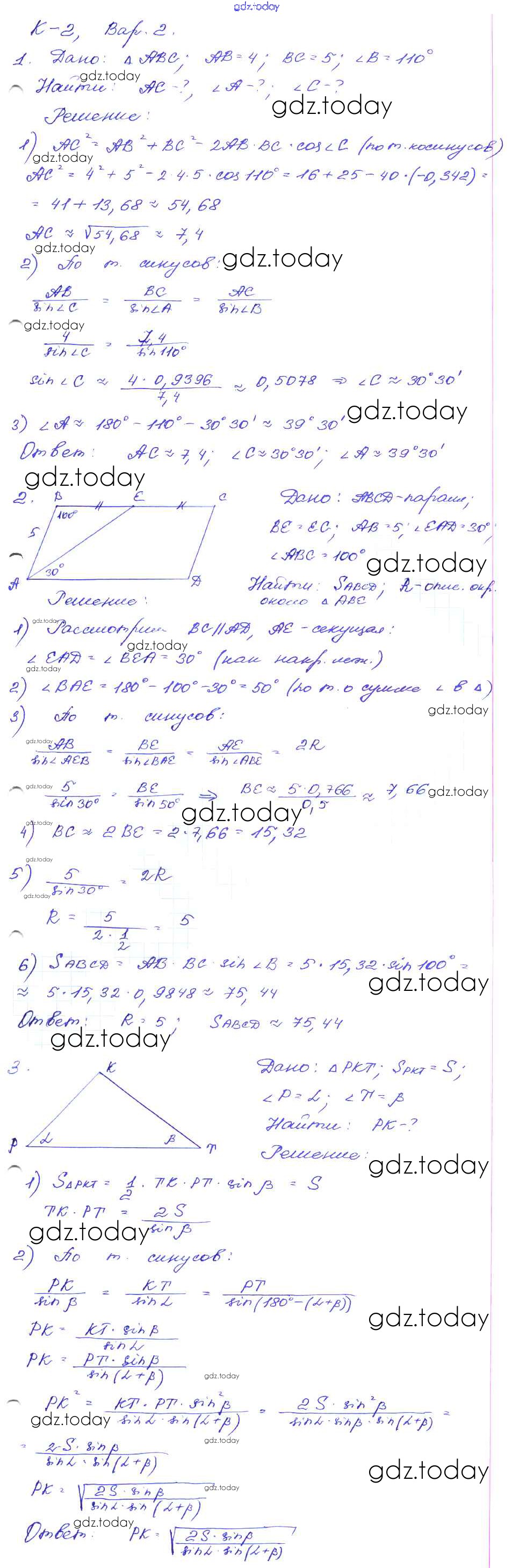 Ответы к КР-2. Варианты Решение к контрольным работам 2 Дидактическим материалам по Геометрии для 9 класса Зив Просвещение 2016