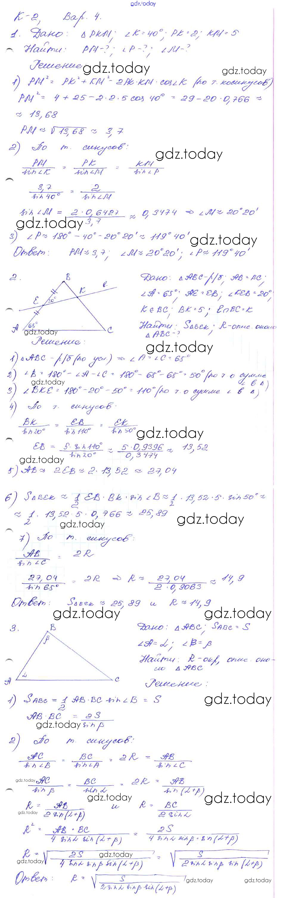 Ответы к КР-2. Варианты Решение к контрольным работам 4 Дидактическим материалам по Геометрии для 9 класса Зив Просвещение 2016