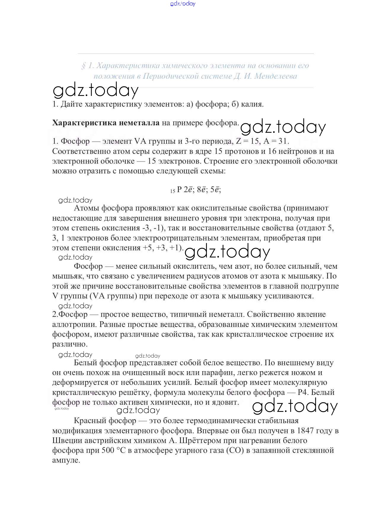 На страницах сайта gdz.today вы найдете учебный и вспомогательный материал, направленный на улучшения знаний школьной программы. ГДЗ - онлайн мир знаний Решение к §1. Характеристика химического элемента на основании его положения в Периодической системе Д. И. Менделеева 1 Учебнику по Химии для 9 класса Габриелян Дрофа Вертикаль 2014