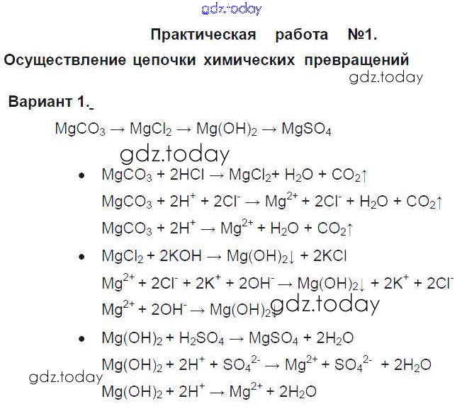 Ответы к ПР-1 Решение к практическим работам вариант-1 Учебнику по Химии для 9 класса Габриелян Дрофа Вертикаль 2014