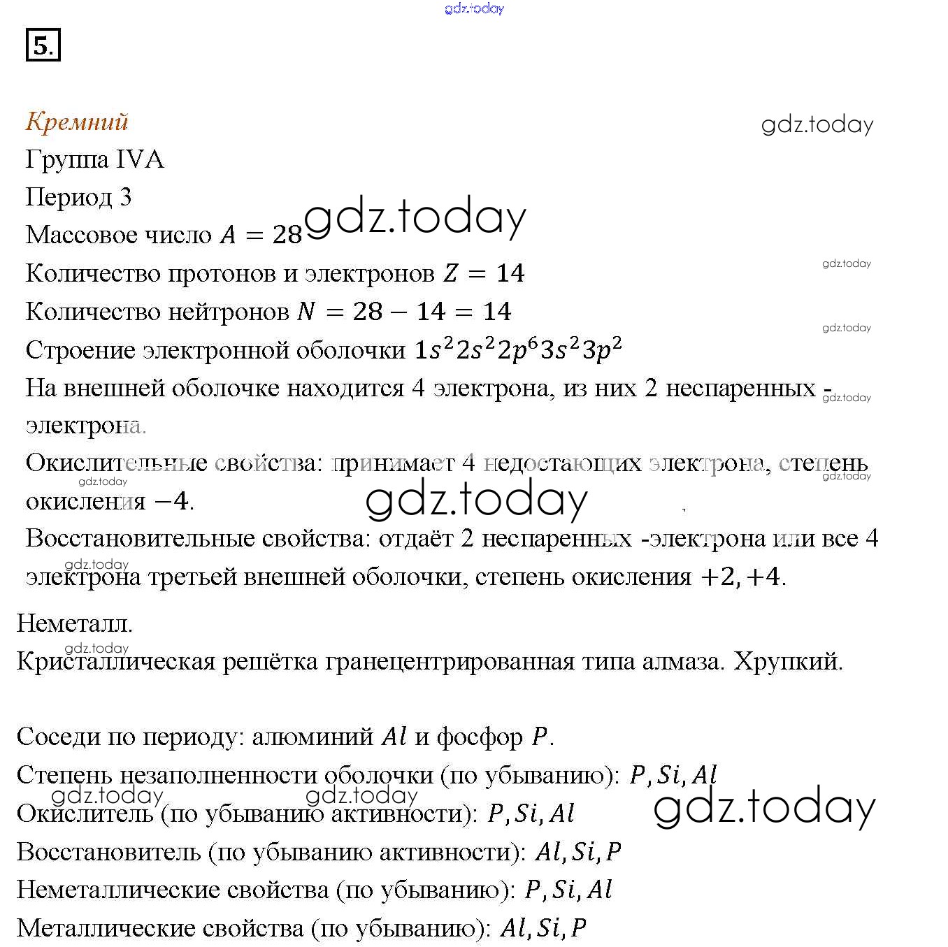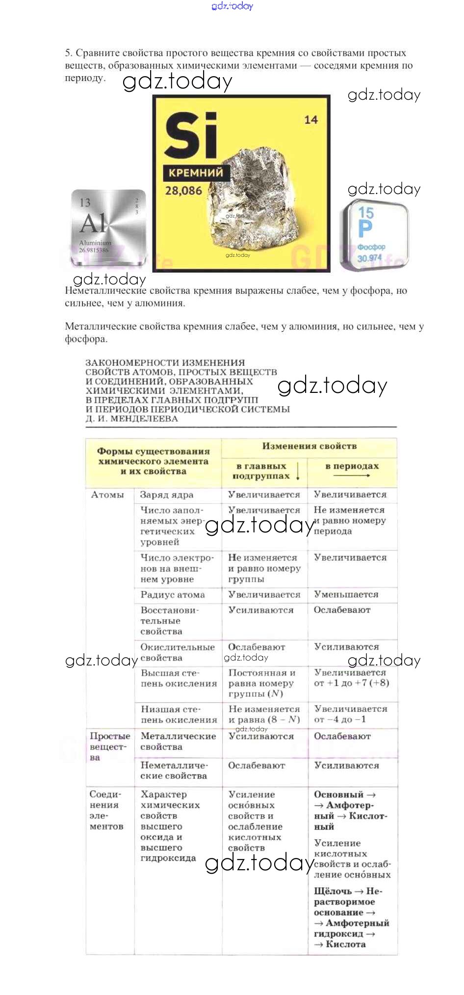 На страницах сайта gdz.today вы найдете учебный и вспомогательный материал, направленный на улучшения знаний школьной программы. ГДЗ - онлайн мир знаний Решение к §1. Характеристика химического элемента на основании его положения в Периодической системе Д. И. Менделеева 5 Учебнику по Химии для 9 класса Габриелян Дрофа Вертикаль 2014