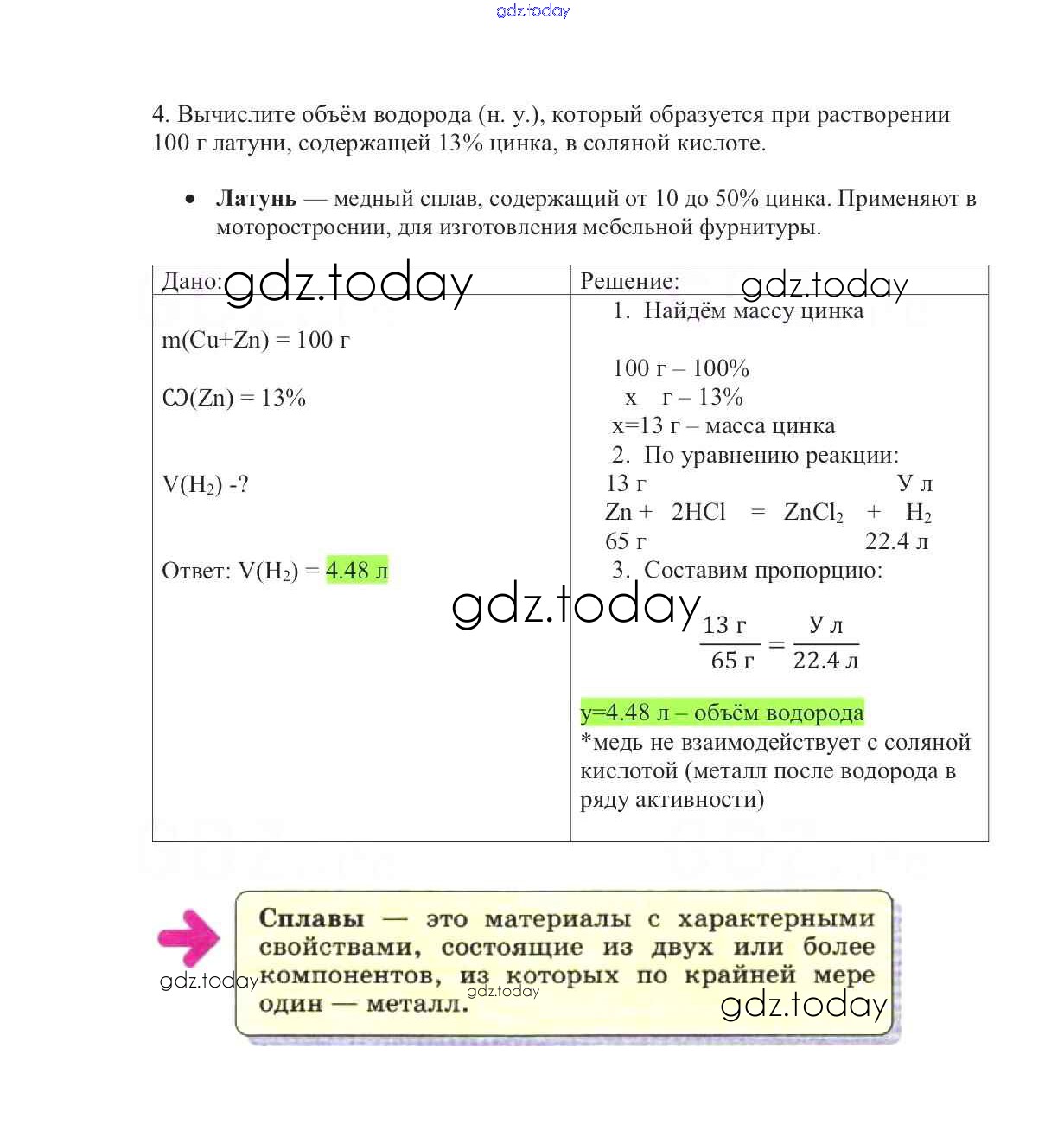 Ответы к Решение к §10. Сплавы 4 Учебнику по Химии для 9 класса Габриелян Дрофа Вертикаль 2014