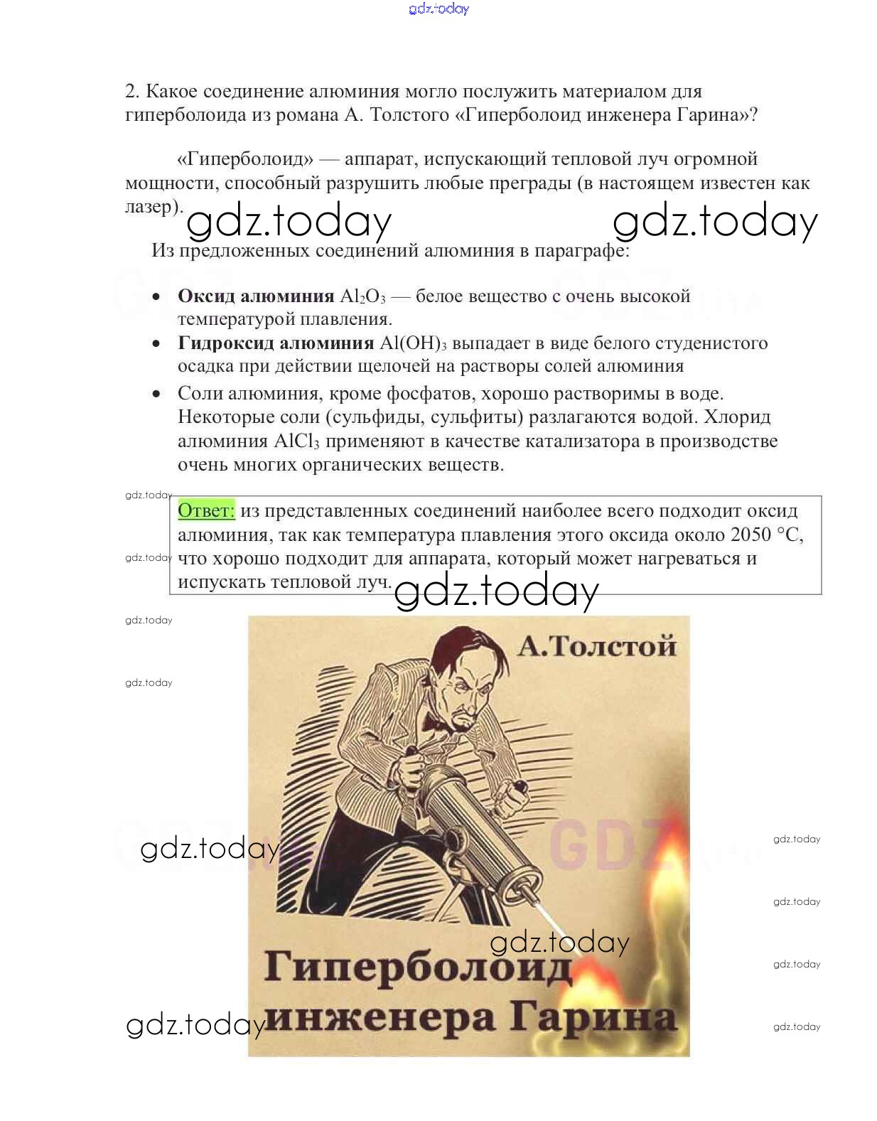 На страницах сайта gdz.today вы найдете учебный и вспомогательный материал, направленный на улучшения знаний школьной программы. ГДЗ - онлайн мир знаний Решение к §16. Алюминий 2 Учебнику по Химии для 9 класса Габриелян Дрофа Вертикаль 2014