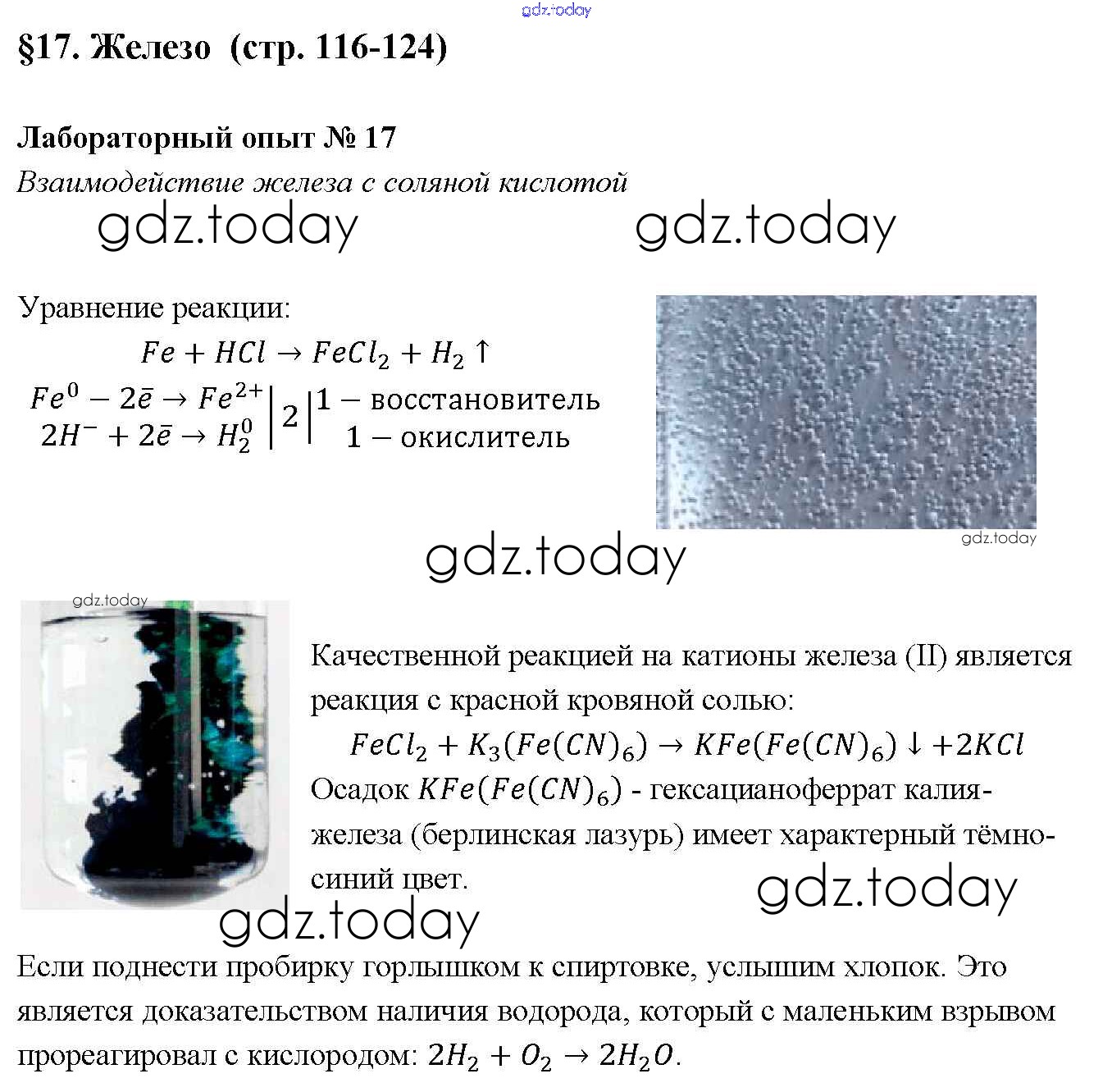 На страницах сайта gdz.today вы найдете учебный и вспомогательный материал, направленный на улучшения знаний школьной программы. ГДЗ - онлайн мир знаний Решение к лабораторным работам №17 Учебнику по Химии для 9 класса Габриелян Дрофа Вертикаль 2014