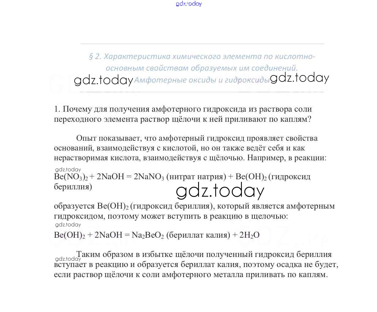 На страницах сайта gdz.today вы найдете учебный и вспомогательный материал, направленный на улучшения знаний школьной программы. ГДЗ - онлайн мир знаний Решение к §2. Характеристика химического элемента по кислотно-основным свойствам образуемых им соединений. Амфотерные оксиды и гидроксиды 1 Учебнику по Химии для 9 класса Габриелян Дрофа Вертикаль 2014