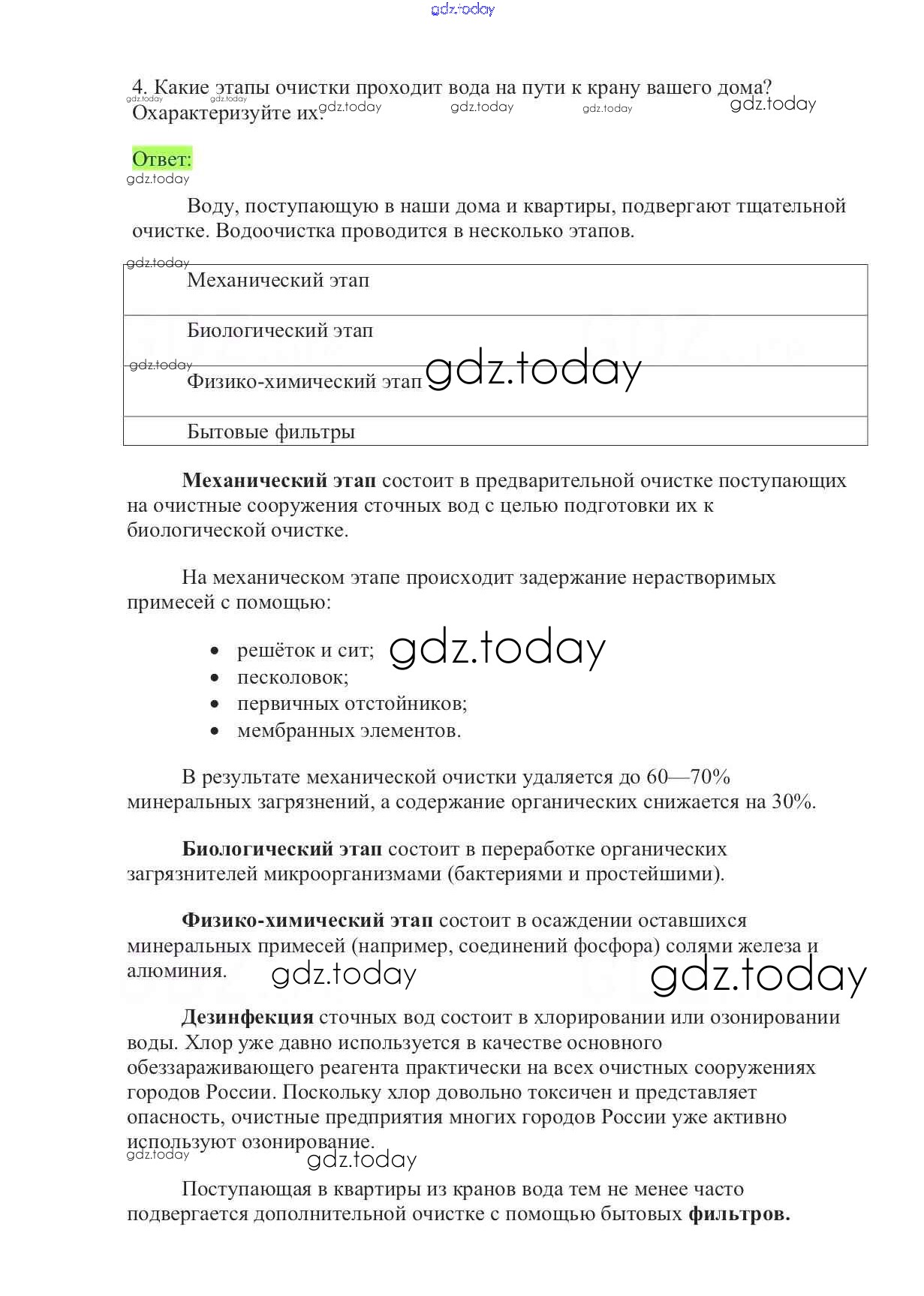 На страницах сайта gdz.today вы найдете учебный и вспомогательный материал, направленный на улучшения знаний школьной программы. ГДЗ - онлайн мир знаний Решение к §21. Вода в жизни человека 4 Учебнику по Химии для 9 класса Габриелян Дрофа Вертикаль 2014