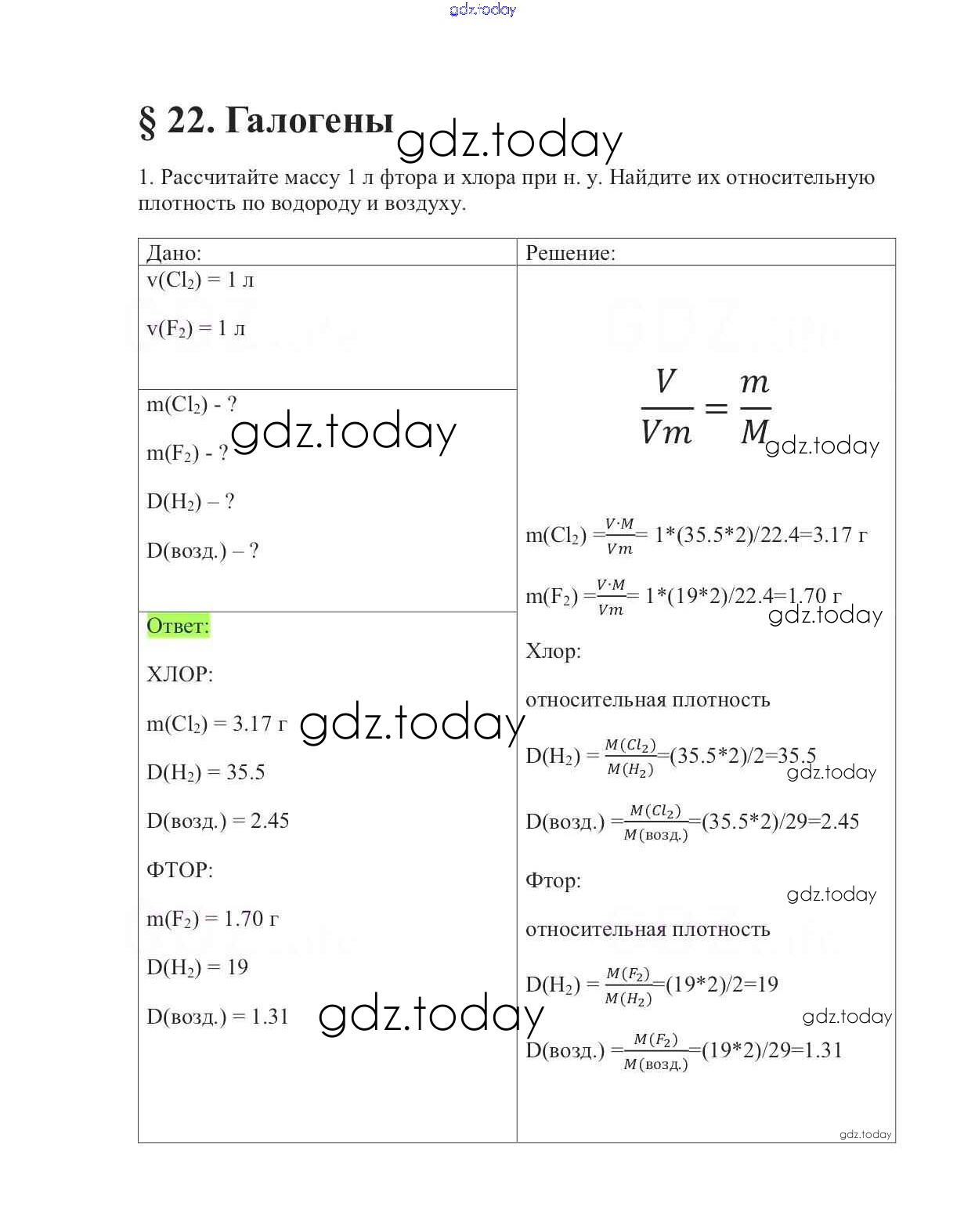 Ответы к Решение к §22. Галогены 1 Учебнику по Химии для 9 класса Габриелян Дрофа Вертикаль 2014