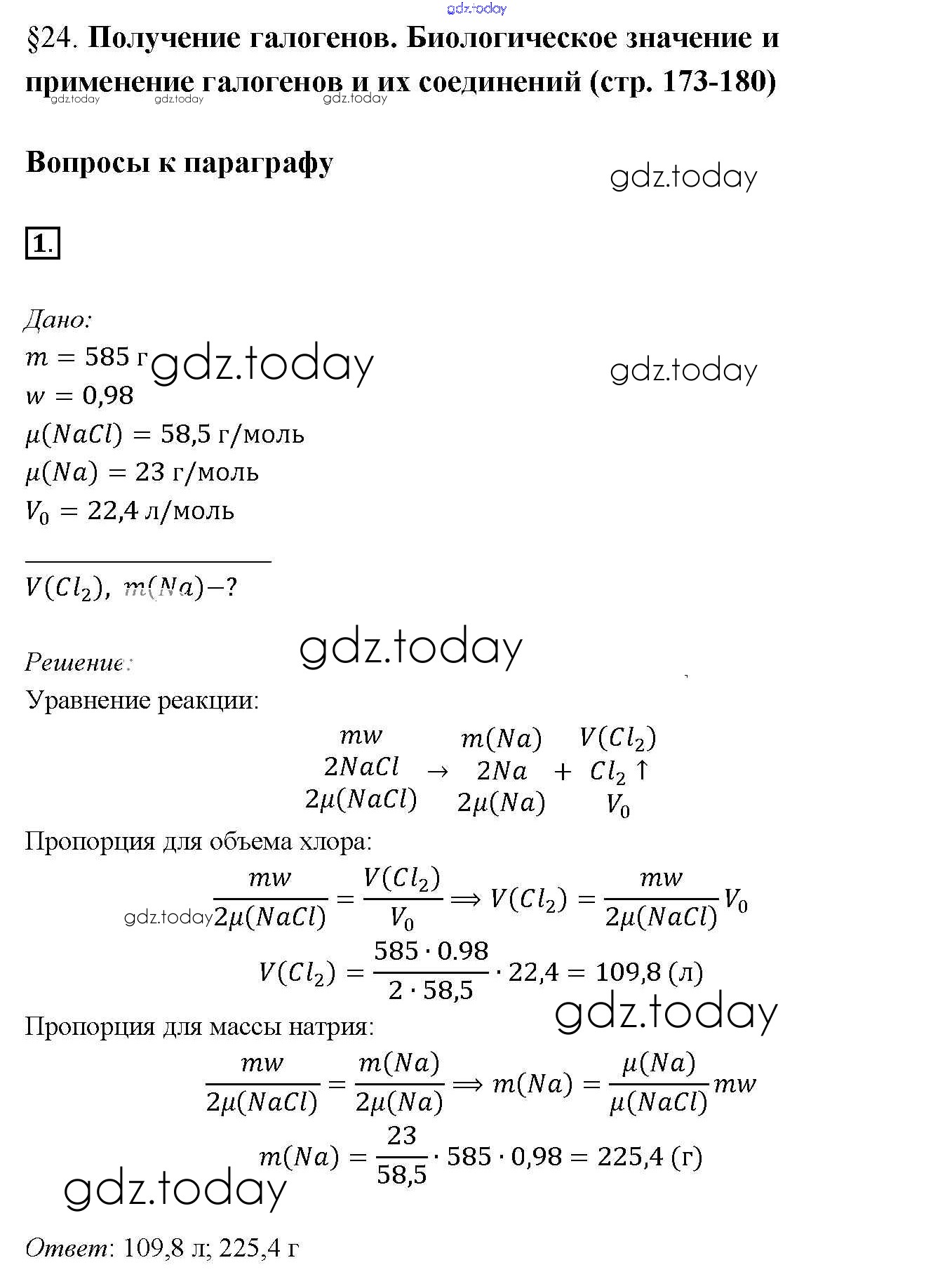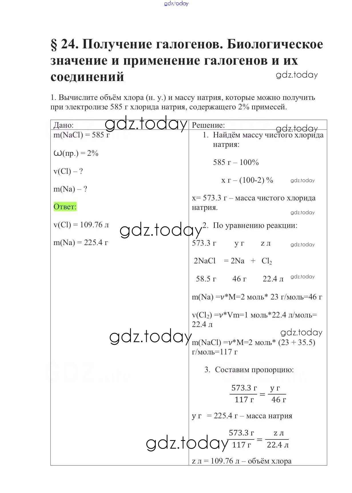 Решение к §24. Получение галогенов. Биологическое значение и применение галогенов и их соединений