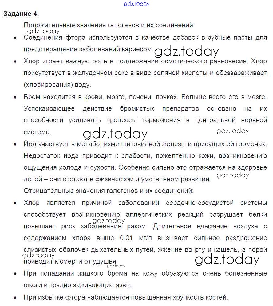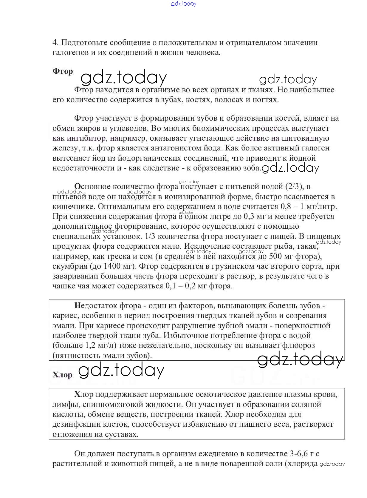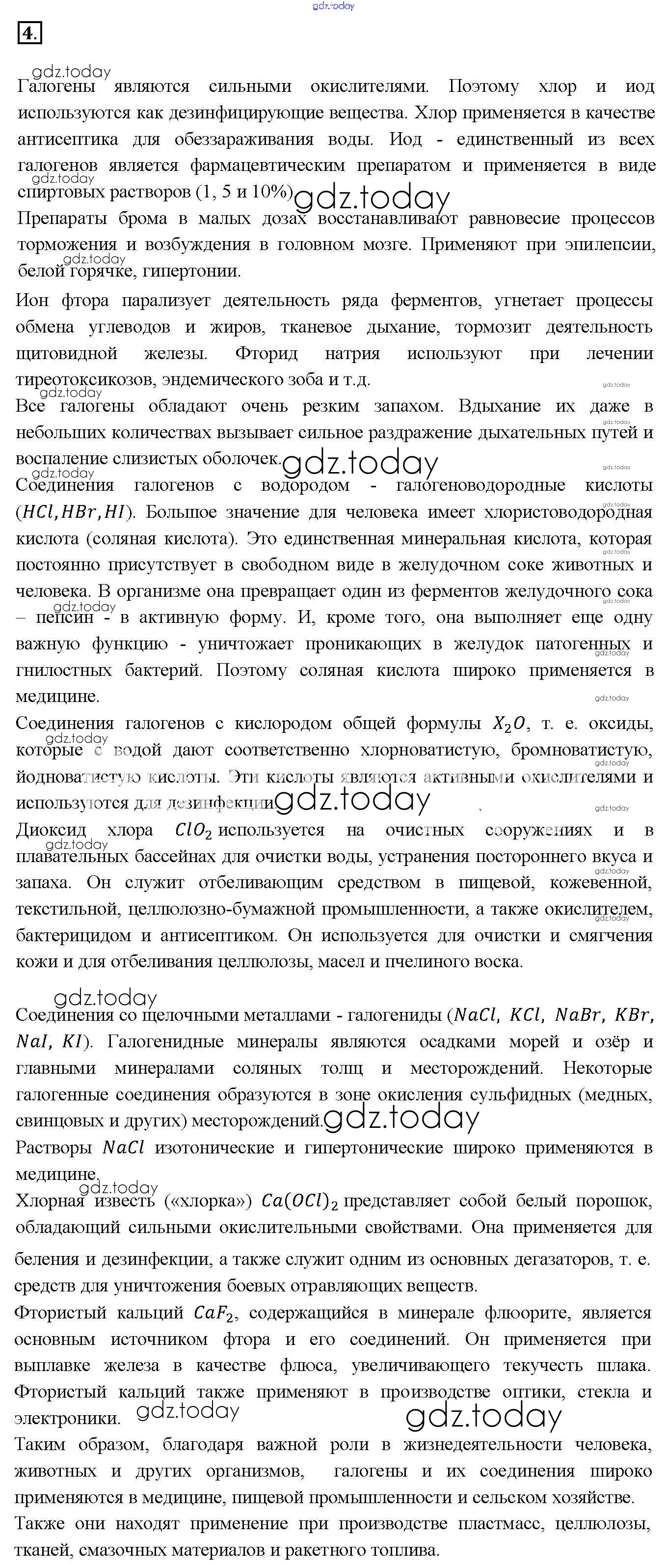 На страницах сайта gdz.today вы найдете учебный и вспомогательный материал, направленный на улучшения знаний школьной программы. ГДЗ - онлайн мир знаний Решение к §24. Получение галогенов. Биологическое значение и применение галогенов и их соединений 4 Учебнику по Химии для 9 класса Габриелян Дрофа Вертикаль 2014