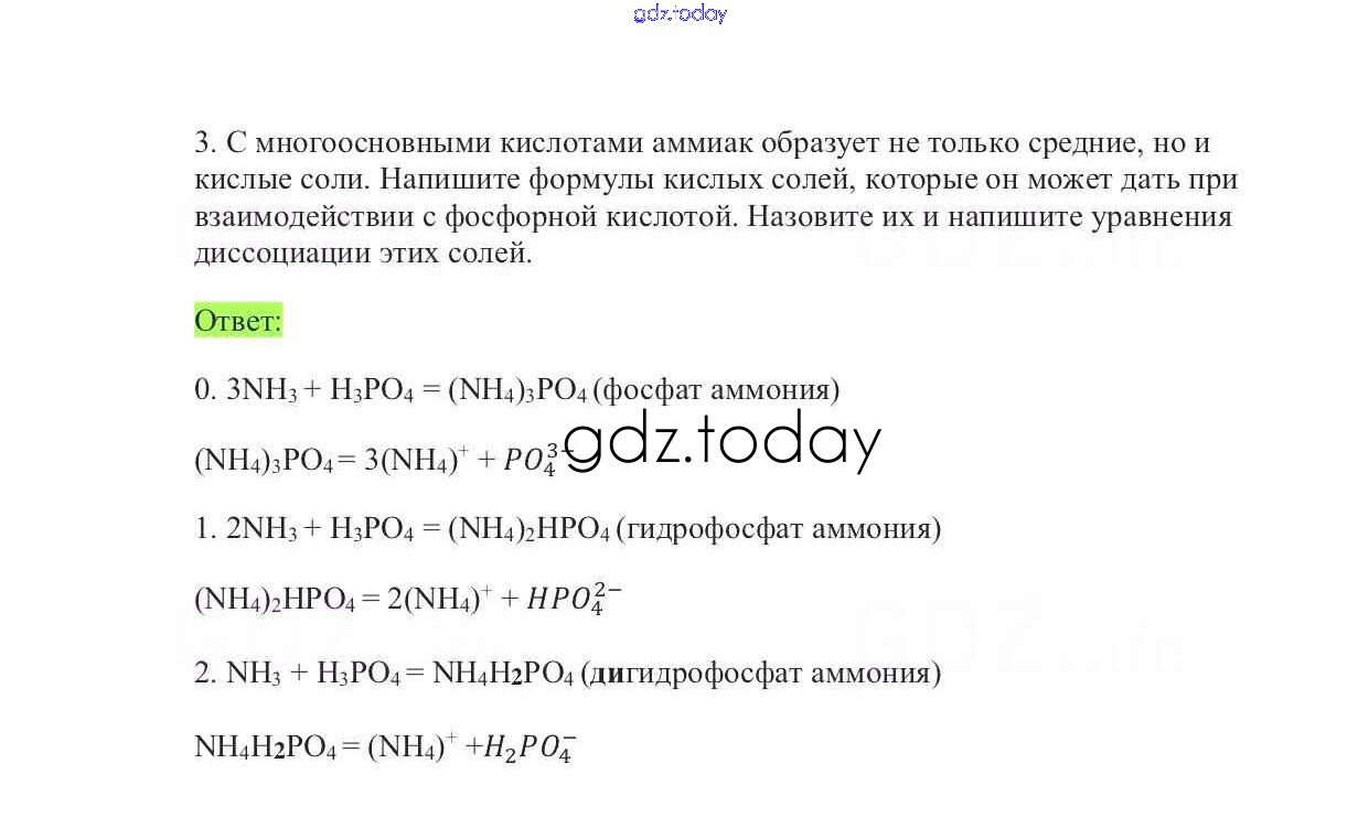 На страницах сайта gdz.today вы найдете учебный и вспомогательный материал, направленный на улучшения знаний школьной программы. ГДЗ - онлайн мир знаний Решение к §30. Соли аммония 3 Учебнику по Химии для 9 класса Габриелян Дрофа Вертикаль 2014