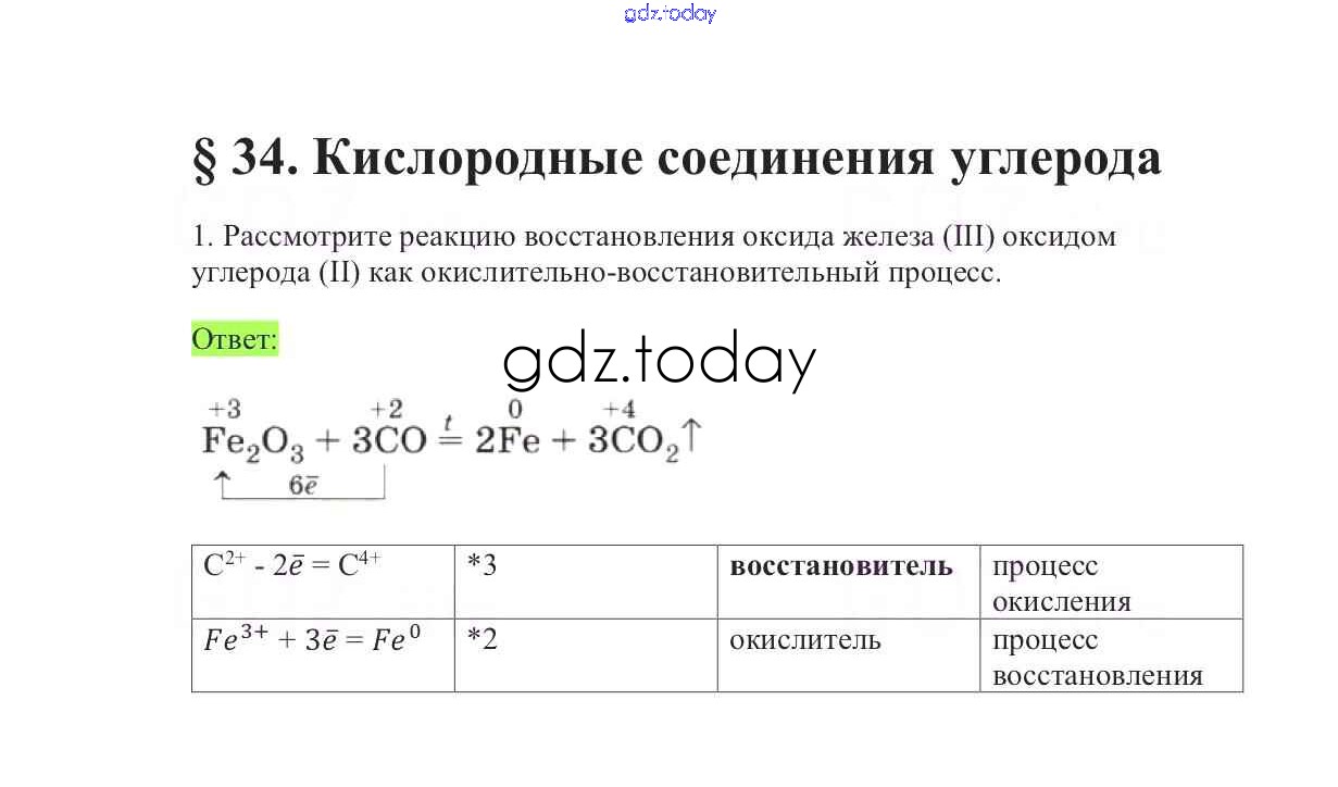 Решение к §34. Кислородные соединения углерода