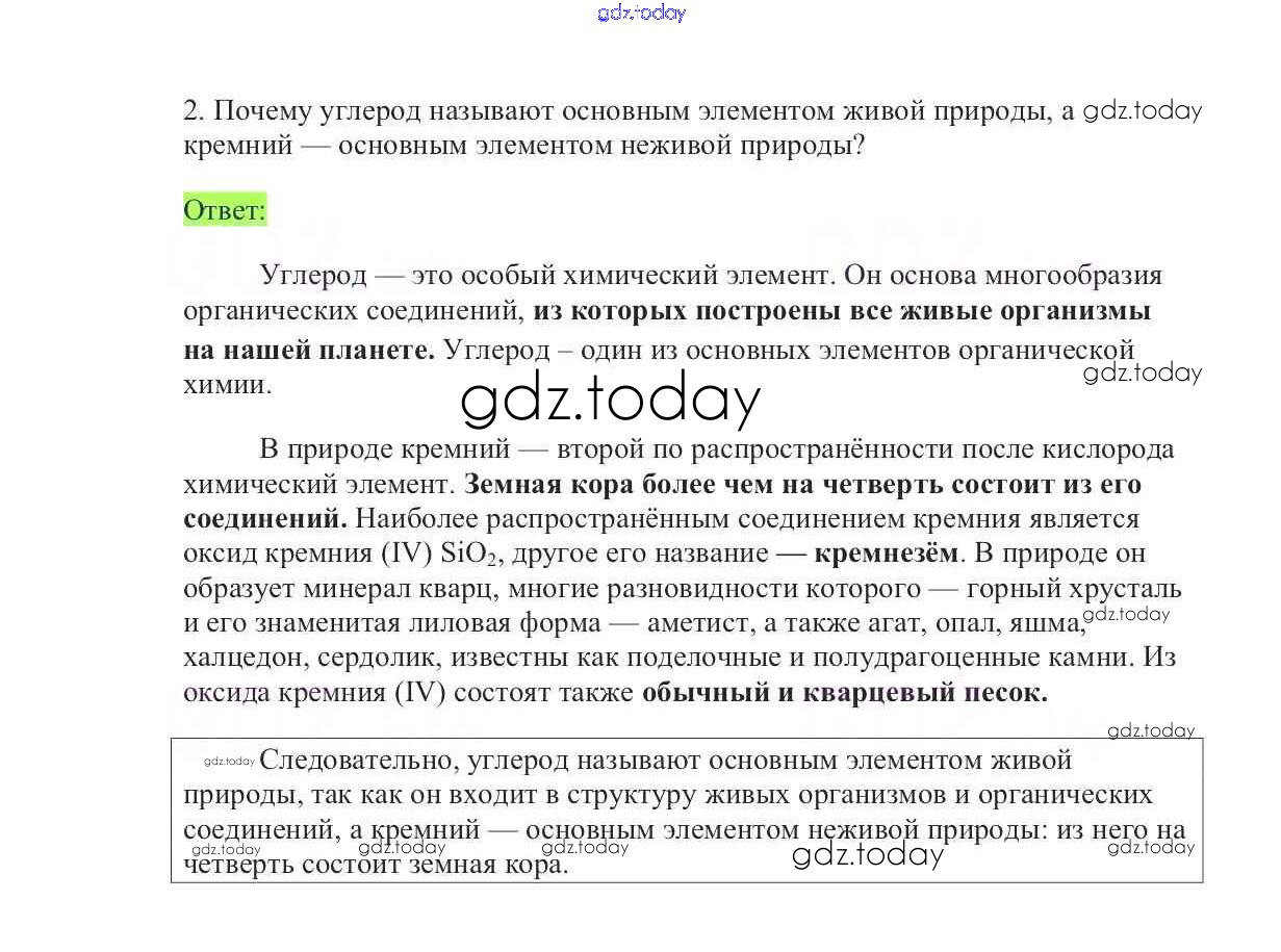 На страницах сайта gdz.today вы найдете учебный и вспомогательный материал, направленный на улучшения знаний школьной программы. ГДЗ - онлайн мир знаний Решение к §35. Кремний и его соединения 2 Учебнику по Химии для 9 класса Габриелян Дрофа Вертикаль 2014