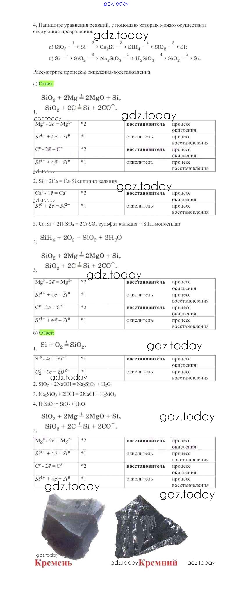 На страницах сайта gdz.today вы найдете учебный и вспомогательный материал, направленный на улучшения знаний школьной программы. ГДЗ - онлайн мир знаний Решение к §35. Кремний и его соединения 4 Учебнику по Химии для 9 класса Габриелян Дрофа Вертикаль 2014