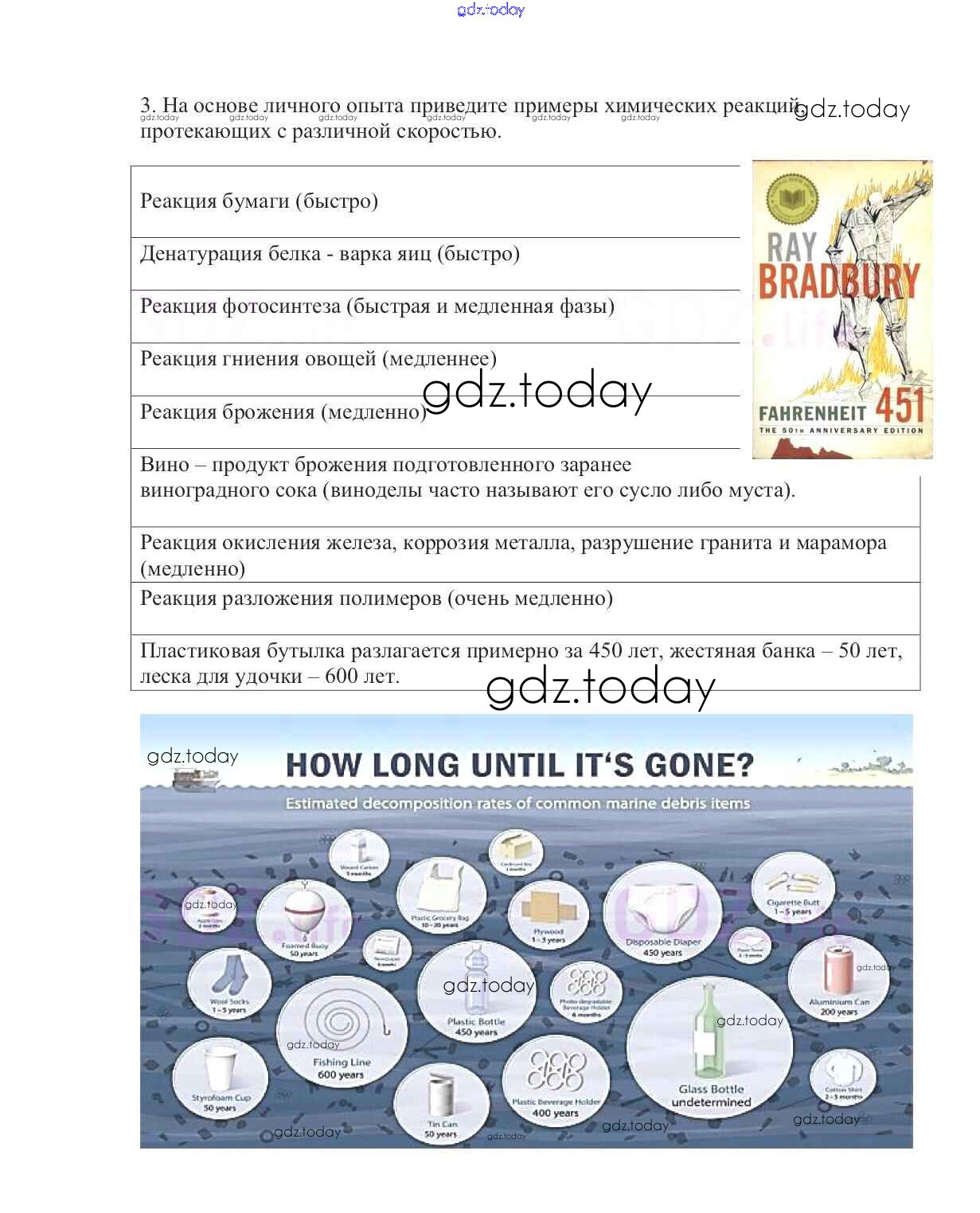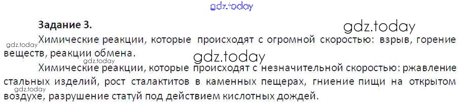 На страницах сайта gdz.today вы найдете учебный и вспомогательный материал, направленный на улучшения знаний школьной программы. ГДЗ - онлайн мир знаний Решение к §5. Химические реакции. Скорость химической реакции 3 Учебнику по Химии для 9 класса Габриелян Дрофа Вертикаль 2014