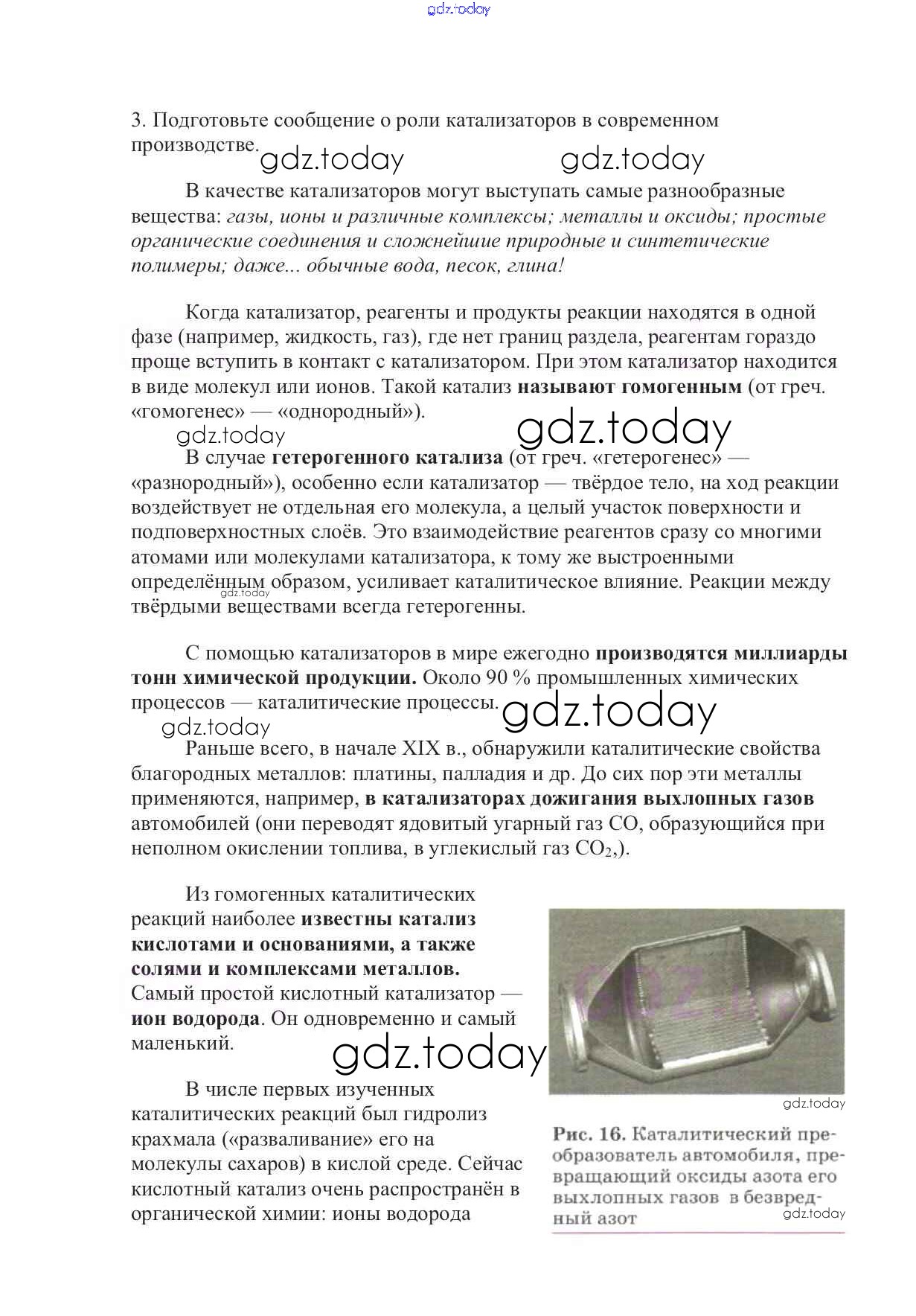На страницах сайта gdz.today вы найдете учебный и вспомогательный материал, направленный на улучшения знаний школьной программы. ГДЗ - онлайн мир знаний Решение к §6. Катализаторы и катализ 3 Учебнику по Химии для 9 класса Габриелян Дрофа Вертикаль 2014