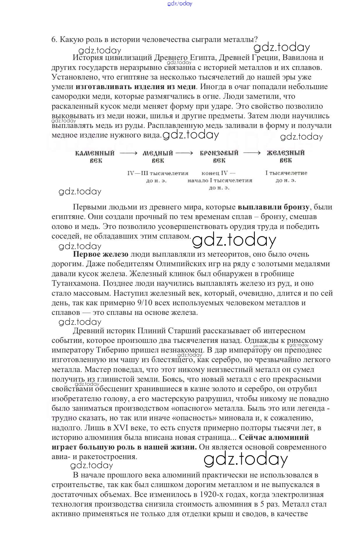 На страницах сайта gdz.today вы найдете учебный и вспомогательный материал, направленный на улучшения знаний школьной программы. ГДЗ - онлайн мир знаний Решение к §7. Век медный, бронзовый, железный 6 Учебнику по Химии для 9 класса Габриелян Дрофа Вертикаль 2014
