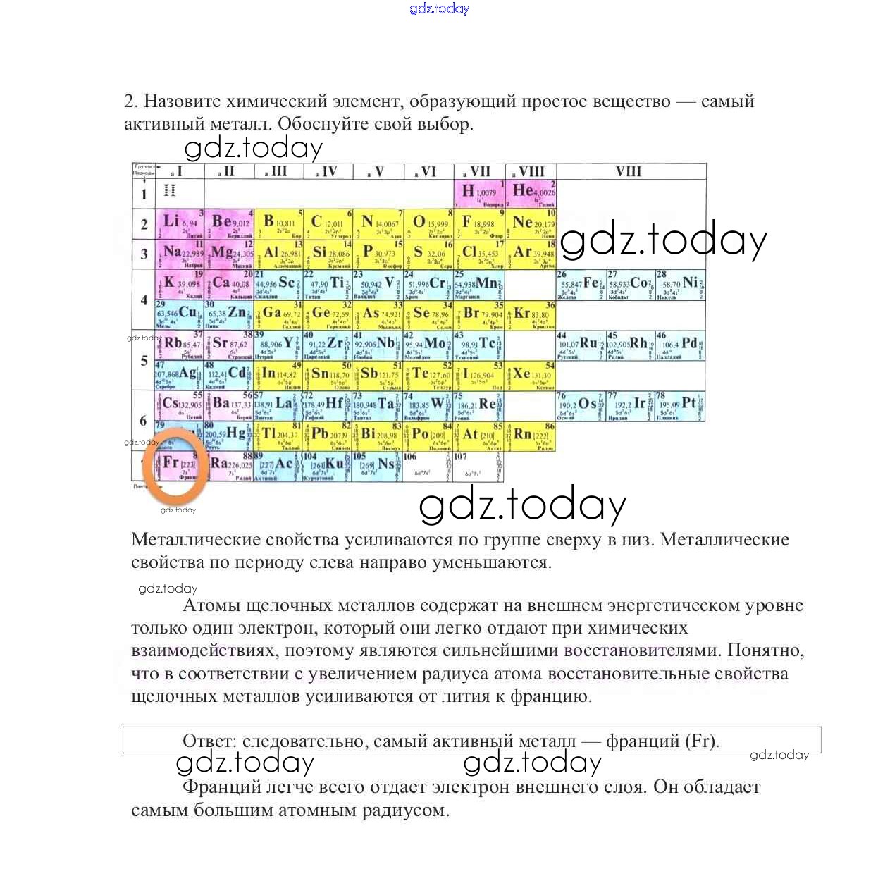 Решение к §8. Положение металлов в Периодической системе Д. И. Менделеева и строение их атомов