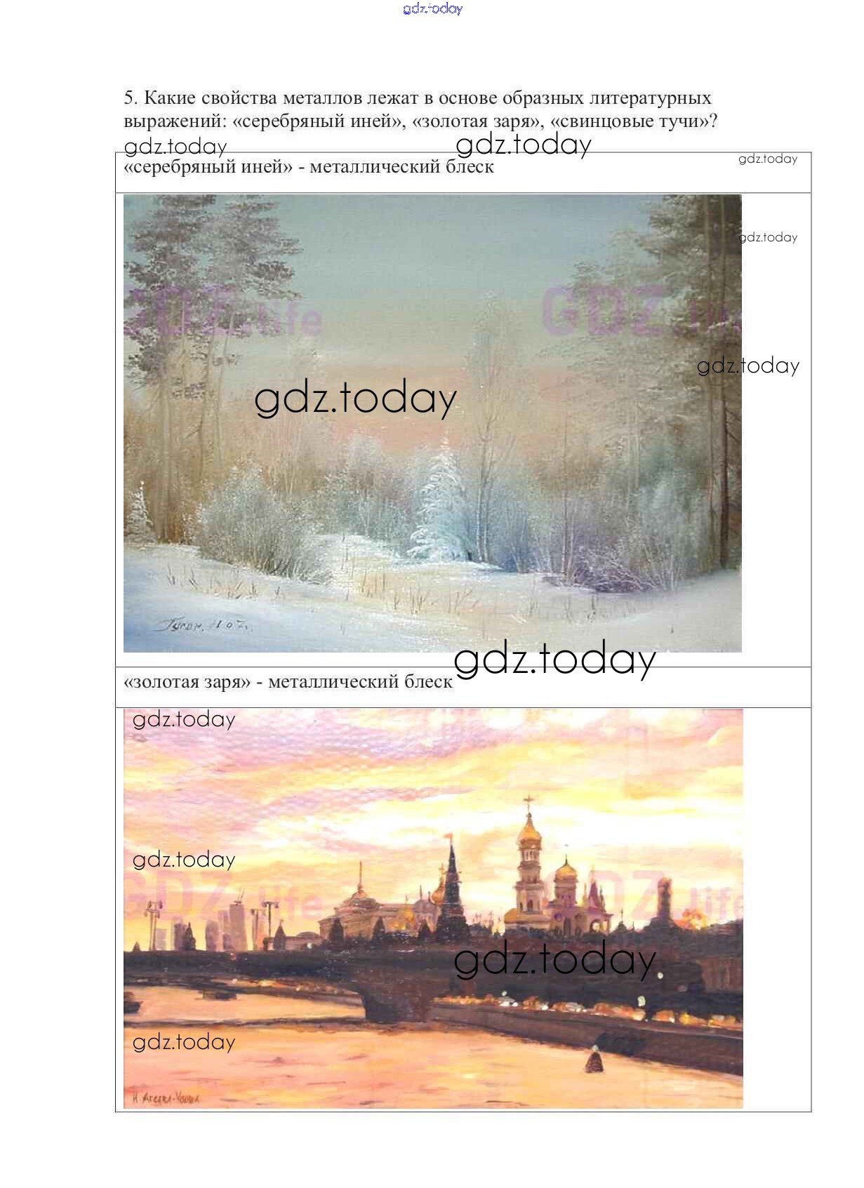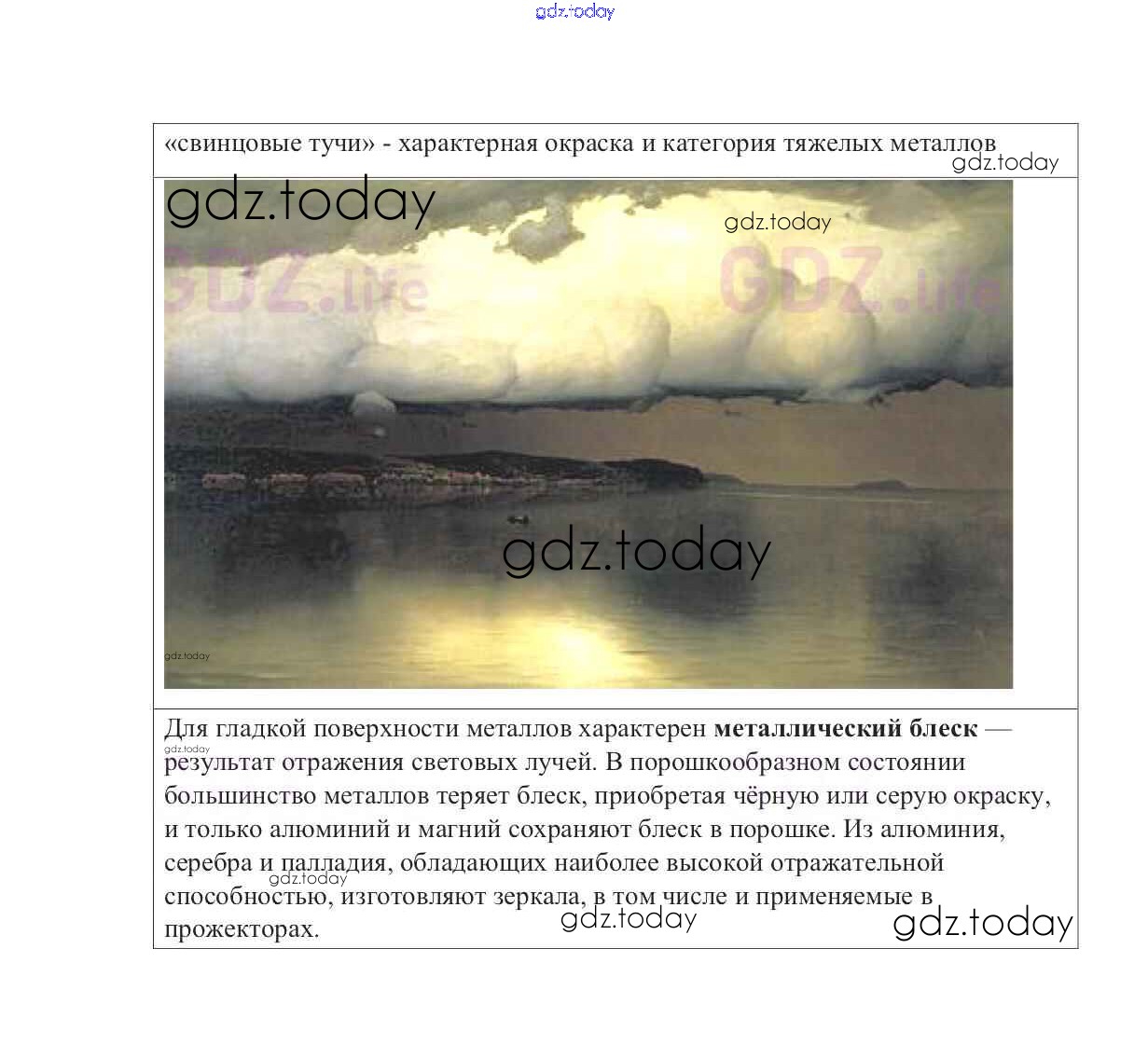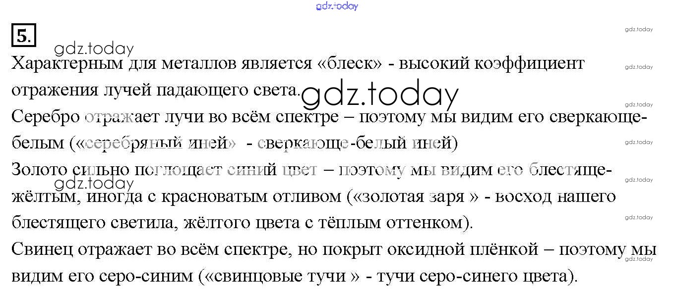 На страницах сайта gdz.today вы найдете учебный и вспомогательный материал, направленный на улучшения знаний школьной программы. ГДЗ - онлайн мир знаний Решение к §9. Физические свойства металлов 5 Учебнику по Химии для 9 класса Габриелян Дрофа Вертикаль 2014