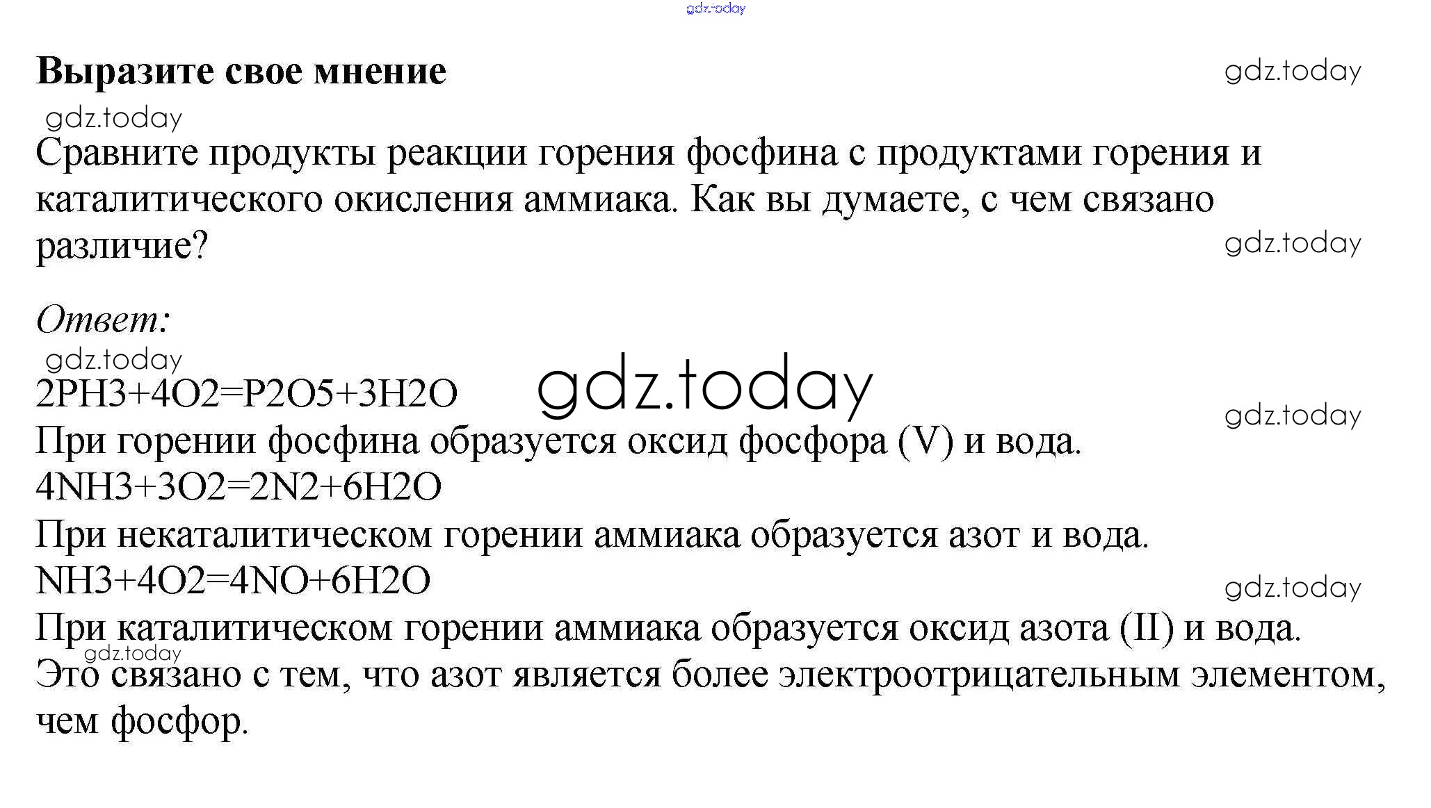 На страницах сайта gdz.today вы найдете учебный и вспомогательный материал, направленный на улучшения знаний школьной программы. ГДЗ - онлайн мир знаний Выразите своё мнение Решение к §19 1 Учебнику по Химии для 9 класса Габриелян, Остроумов Просвещение 2021